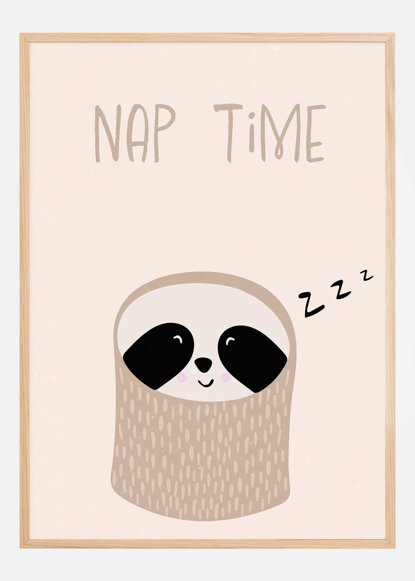 Dieses bezaubernde Poster, verziert mit den Worten "NAP TIME" und einer Abbildung eines schlafenden Faultiers, ist die perfekte Wanddekoration, um eine ruhige und entspannte Atmosphäre zu schaffen. Die Illustration ist in sanften, gedämpften Farben gehalten, mit einem pastellrosa Hintergrund und dem Fell des Faultiers in natürlichen Beige- und Brauntönen. Die großen, freundlichen Augen und das friedliche Lächeln auf dem Gesicht des Faultiers sind unwiderstehlich und vermitteln ein Gefühl von Wärme und Ruhe.
