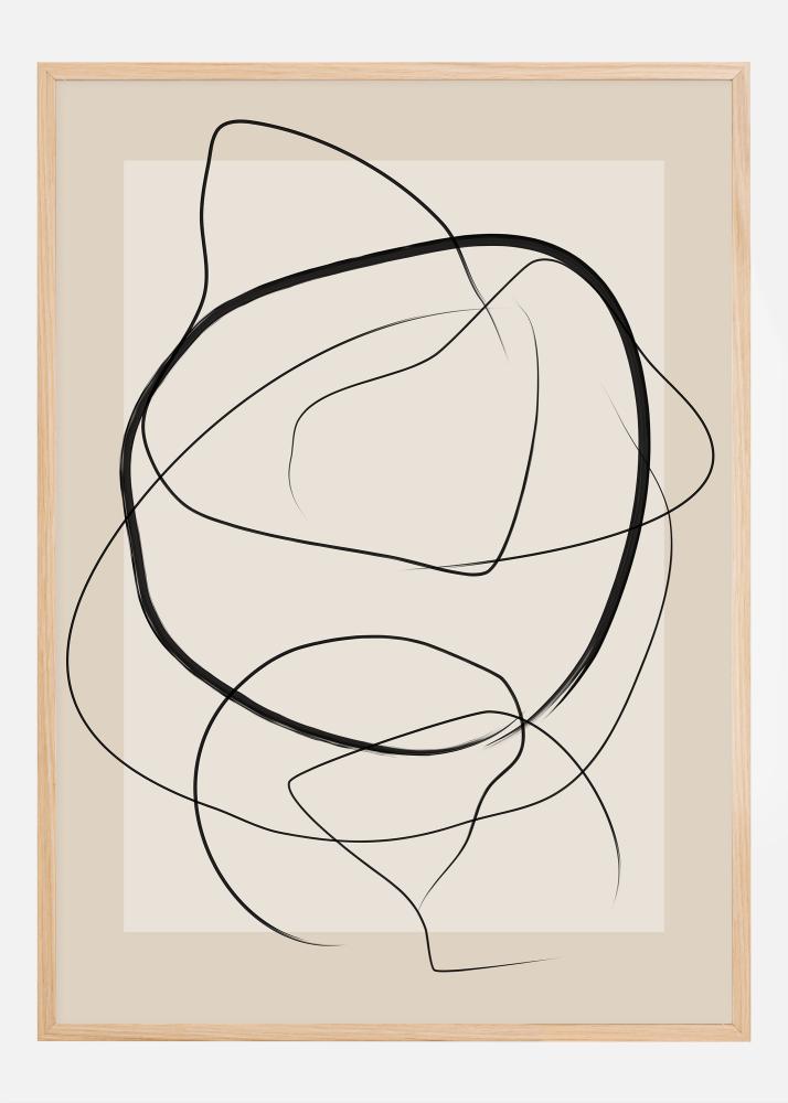 Dieses zeitgenössische Poster ist Teil unserer Kunstsammlung und präsentiert eine Reihe sanfter, schwungvoller Linien, die eine abstrakte und meditative Komposition bilden. Die schwarzen Linien fließen frei über den beigen Hintergrund und erzeugen ein Gefühl von Bewegung und Rhythmus, während sie den Betrachter zu einem Moment der Kontemplation einladen. Diese minimalistische, aber kühne Kunst ist perfekt für diejenigen, die die Kraft des abstrakten Ausdrucks schätzen, um persönliche Interpretation und innere Reflexion zu ermöglichen.