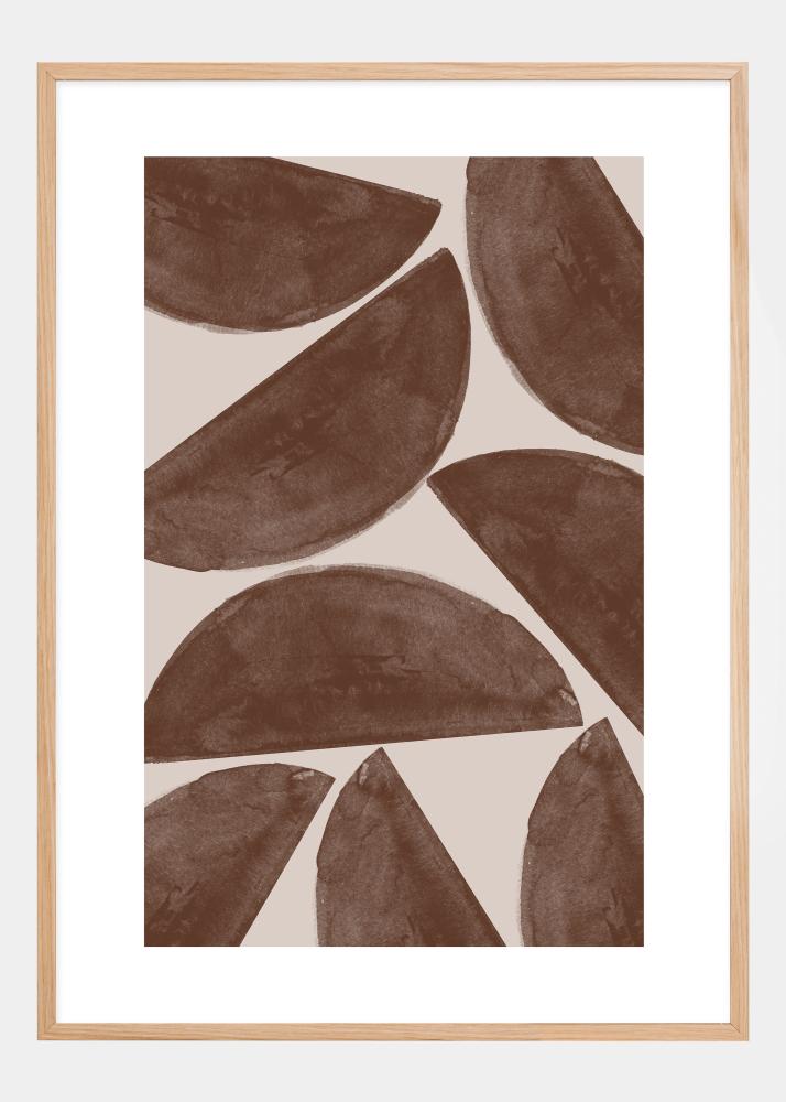 Dieses Poster hebt eine Reihe von sanft abstrahierten Formen hervor, die an die schlichte Schönheit der Natur erinnern. Mit seinem Arrangement aus organischen Elementen in warmen Braun- und Beigetönen vermittelt es den Eindruck von Steinen oder Blättern, die in einem natürlichen Muster verstreut liegen. Dieser Druck ist ein Beispiel für abstrakte Kunst, die ebenso nachdenklich wie ästhetisch befriedigend ist.