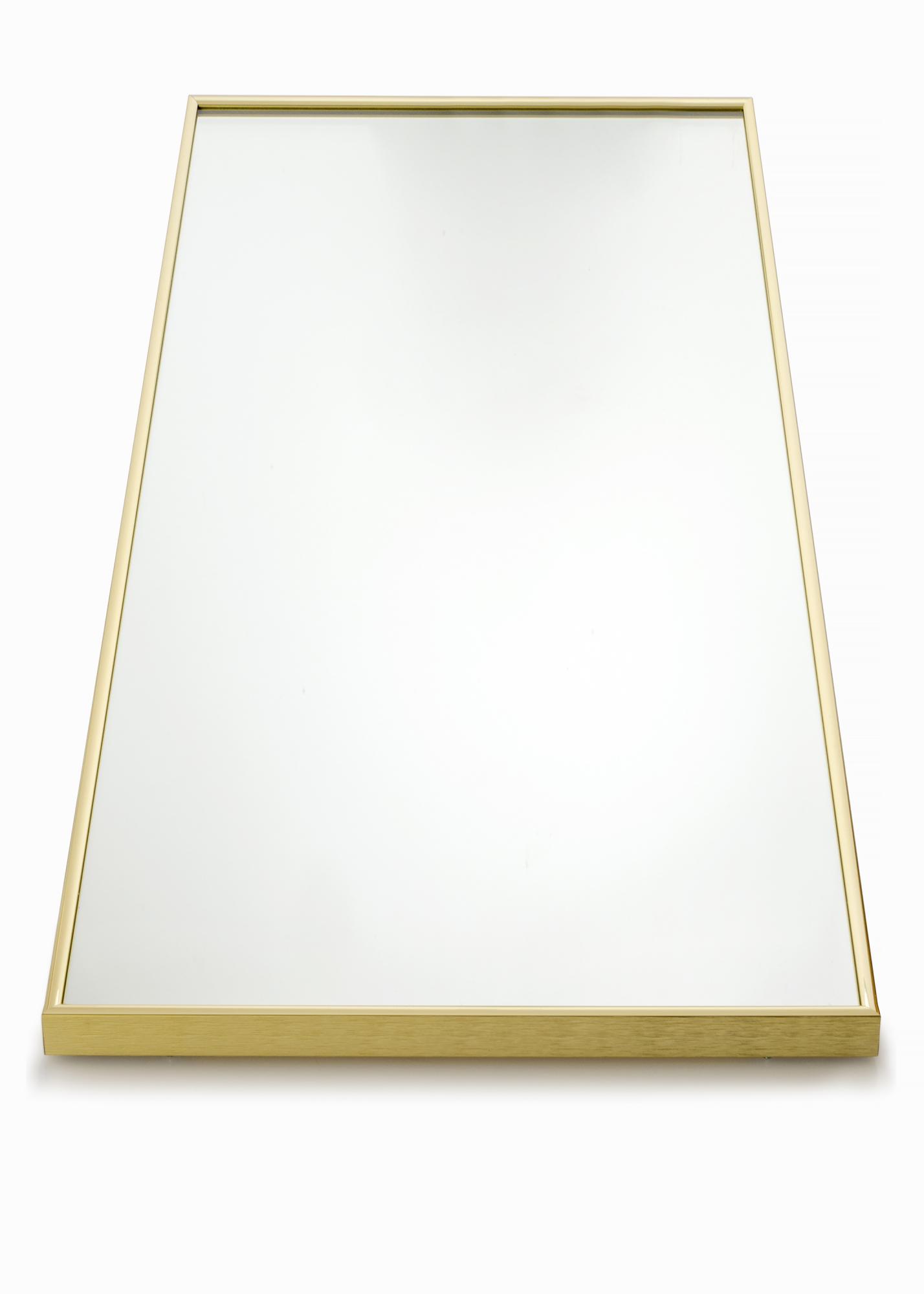 Der Spiegel hat einen goldfarbenen Aluminiumrahmen und kann dank der cleveren Wandhalterungen einfach an der Wand aufgehängt werden. Maße: 40x120 cm
