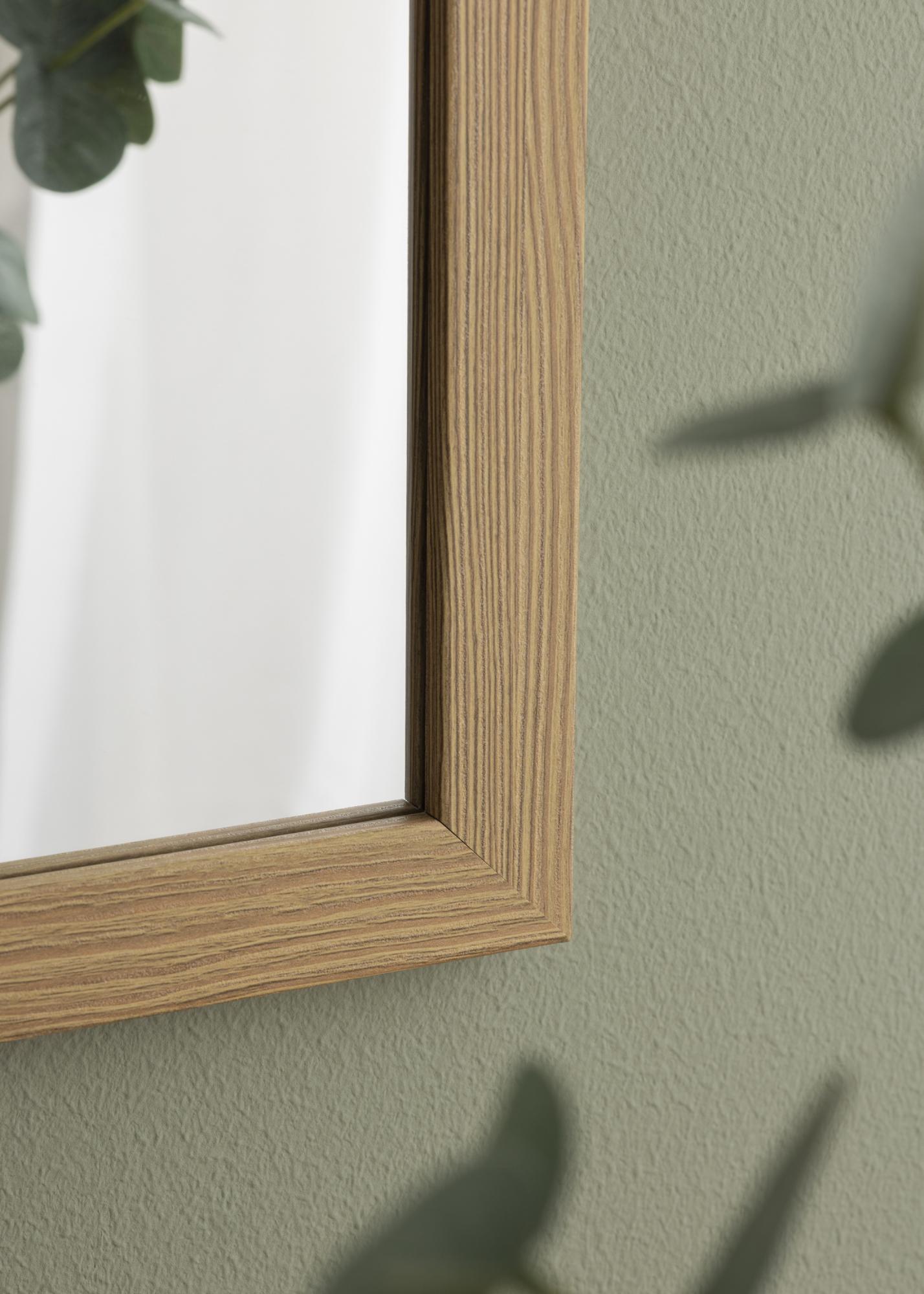 Dieser Türspiegel hat einen schlanken, modernen Holzrahmen aus Eiche, der ein warmes und natürliches Ambiente schafft. Die matte Oberfläche lässt den Spiegel dezent wirken und verleiht dem Raum zugleich Struktur und Charakter.