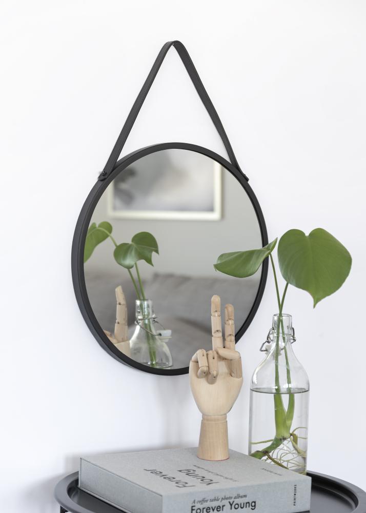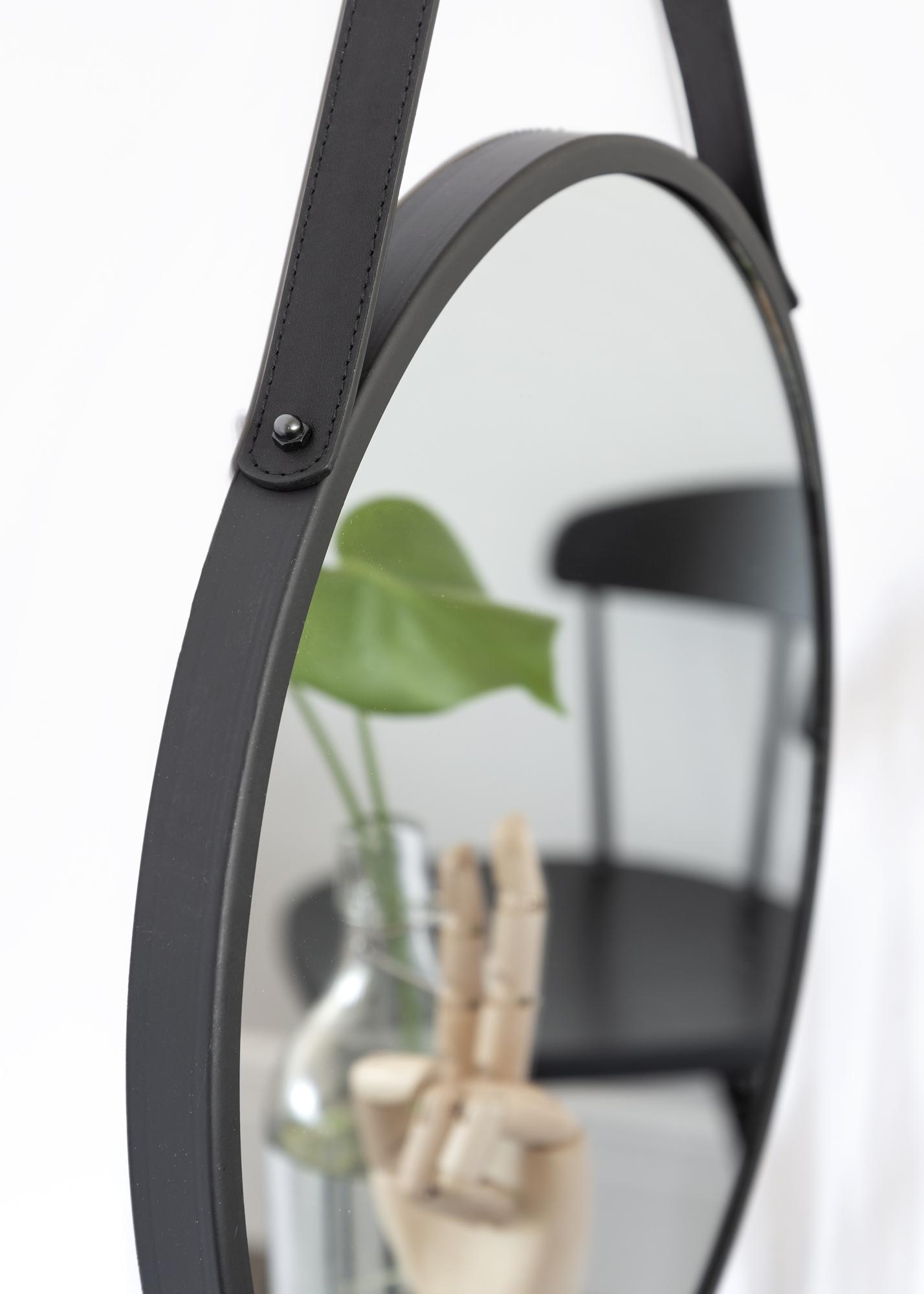 Trapani ist ein runder, klassischer Wandspiegel mit schwarzem Metallrahmen. Der runde Spiegel macht sich hervorragend als klassischer Wandspiegel, elegant und funktionell mit Aufhängeband aus PU-Kunstleder. Perfekt als runder Flurspiegel, Schlafzimmerspiegel oder schöne Wanddekoration in Ess- oder Wohnzimmer.