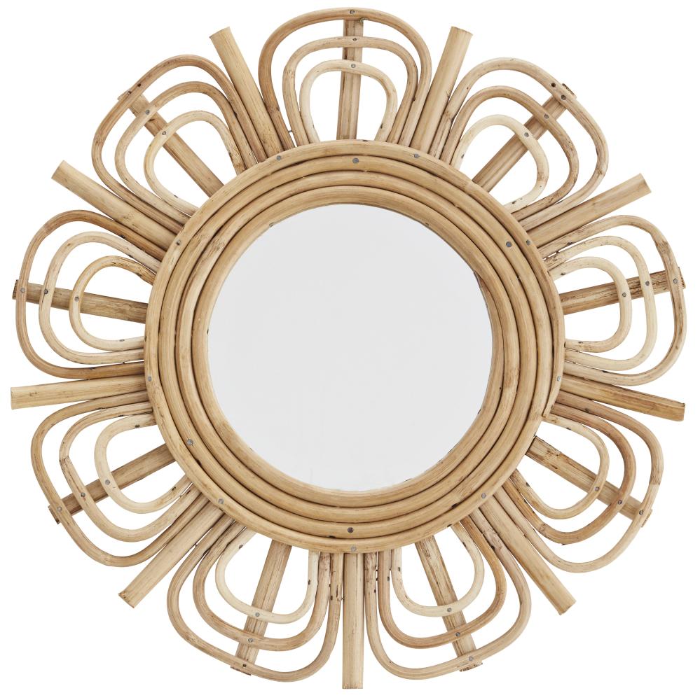 Mache diesen wunderschönen Spiegel von Madam Stoltz zu einem auffälligen Einrichtungsdetail in deinem Zuhause. Die besondere Form ist einer Blume nachempfunden, was diesem Wandspiegel, zusammen mit dem Bambusrahmen, eine stilvolle und unkonventionelle Optik verleiht. Der Spiegel hat einen Durchmesser von 45 cm. Der Spiegel ist handgefertigt und aus natürlichen Materialien hergestellt, was bedeutet, dass jeder einzelne Artikel im Aussehen leicht variieren kann.