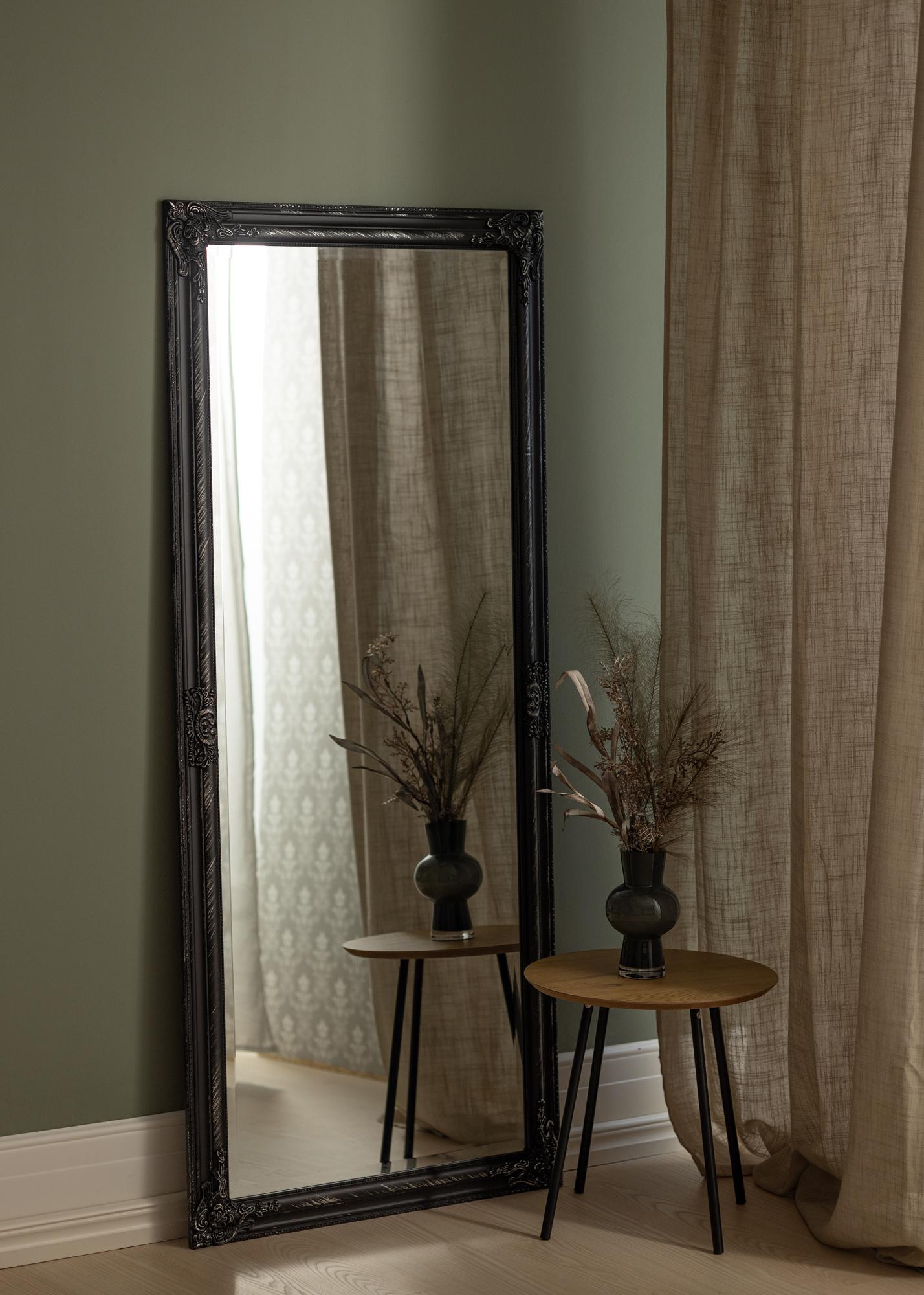 Entdecken Sie das elegante und raffinierte Design mit unserem stehenden Spiegel, perfekt dimensioniert auf 70x160 cm, um eine vollständige Reflexion zu bieten. Dieser Spiegel präsentiert eine stehende, rechteckige Form, die sowohl moderne als auch traditionelle Einrichtungsstile ergänzt. Der schwarze Rahmen ist sorgfältig gestaltet mit einem detaillierten Design, das jedem Raum eine luxuriöse Atmosphäre verleiht.
