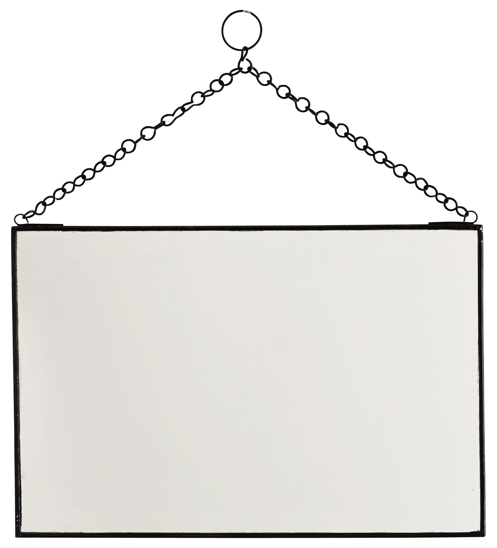Dieser rechteckige Spiegel von Madam Stoltz wird sowohl im Schlaf- als auch im Wohnzimmer zu einem stylischen Detail. Die klassische Form mit schwarzem Rahmen erzeugt eine edle Optik, welche durch die elegante Ketten-Aufhängung des Spiegels noch verstärkt wird. Der Spiegel hat die Maße 30×20 cm. Dank seiner zierlichen Größe lässt sich dieser Wandspiegel hervorragend mit anderen Spiegelmodellen kombinieren.