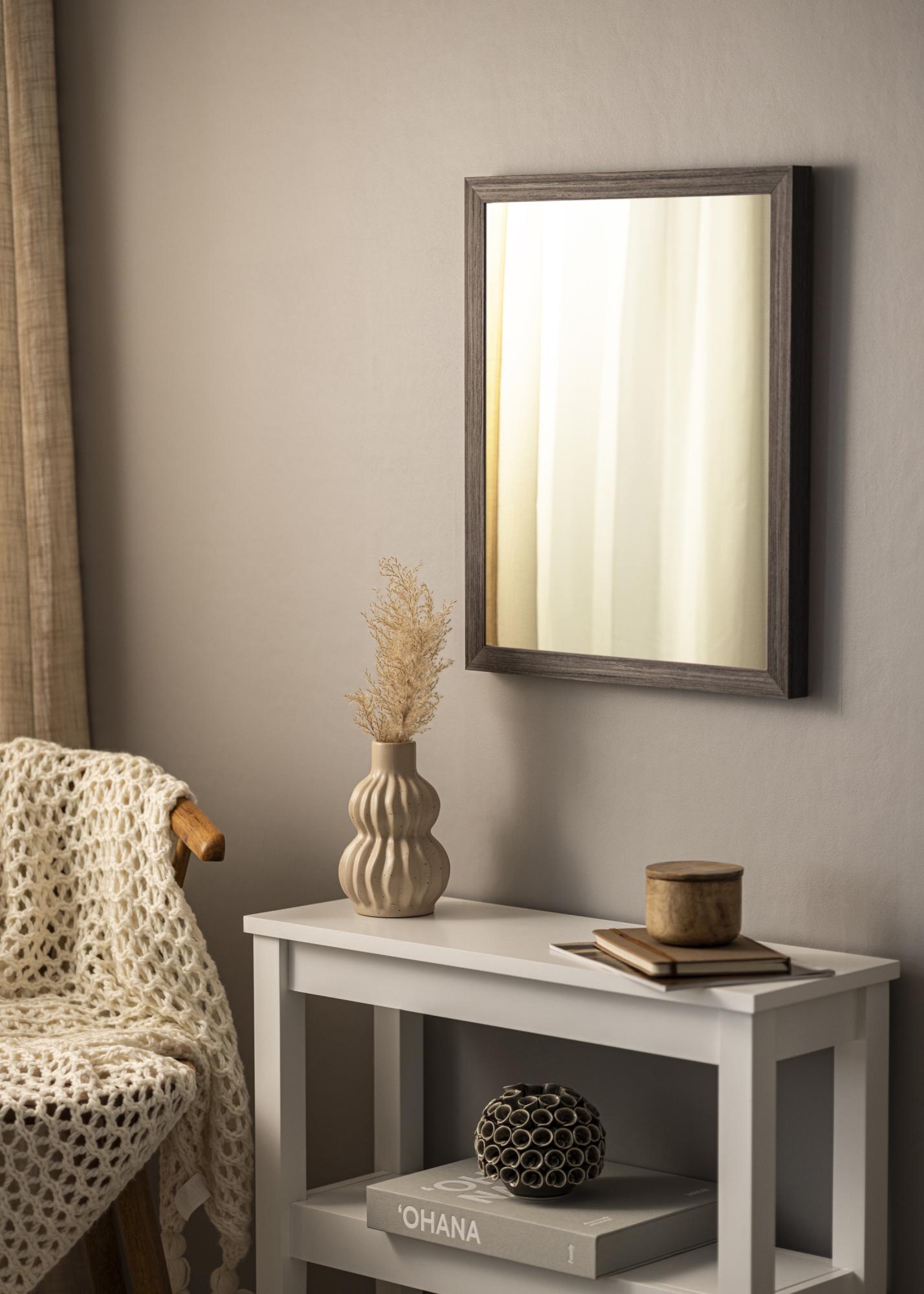 Spiegel Cotswold Grau ist ein maßgefertigter Spiegel, den wir herstellen, um genau Ihren Bedürfnissen zu entsprechen. Mit seiner 28 mm breiten Rahmenleiste und einer Tiefe von 33 mm bietet dieser Spiegel eine perfekte Balance zwischen Funktionalität und Ästhetik. Der Rahmen besteht aus Kiefernholz und hat eine dunkle Holzoptik mit einer deutlich gemaserten Struktur, die sein natürliches Aussehen betont und dem Raum ein warmes und einladendes Gefühl verleiht.