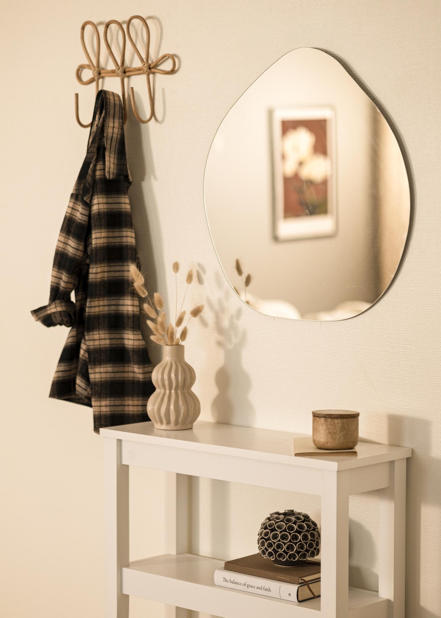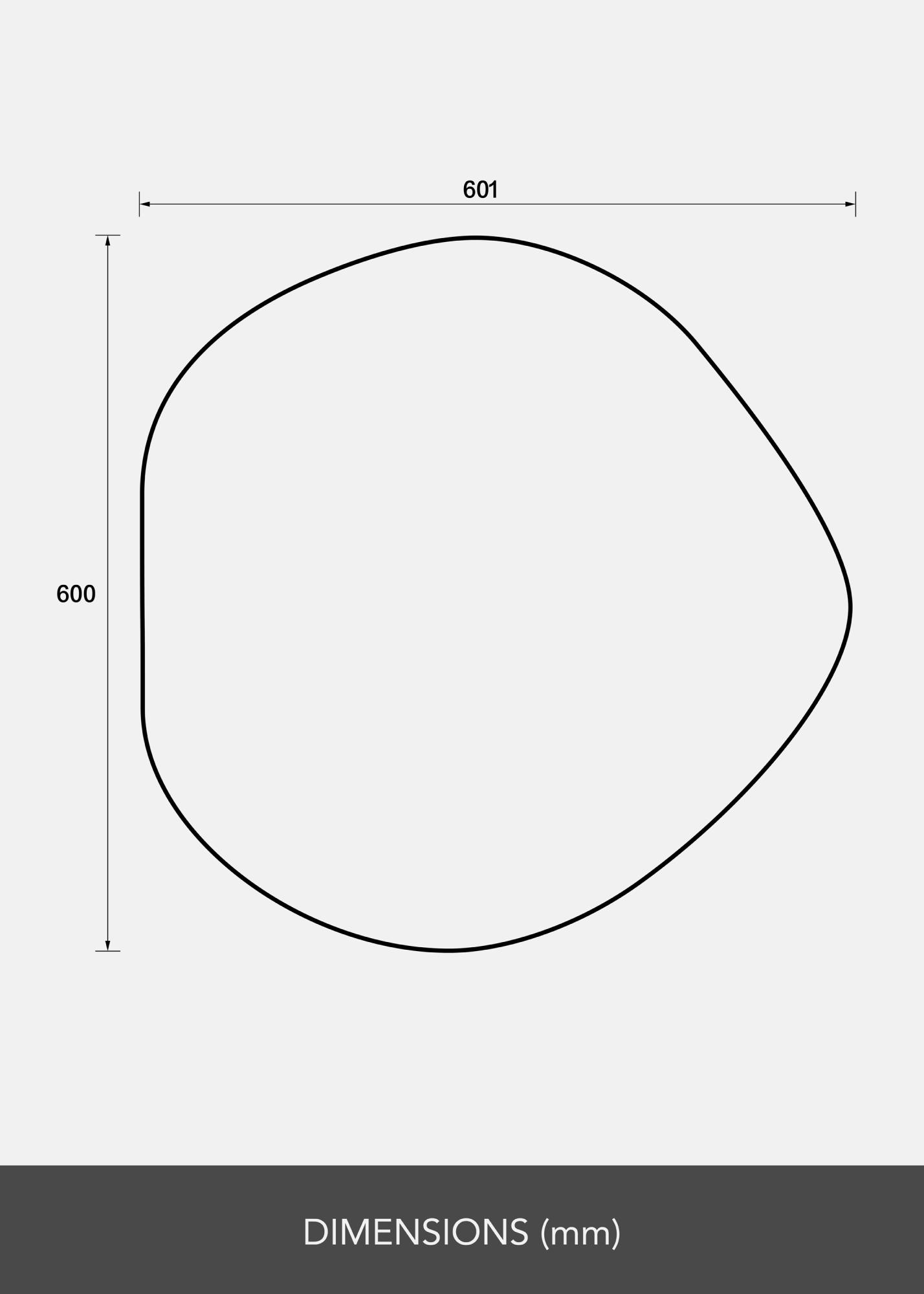 Entdecken Sie den einzigartigen Charme unseres asymmetrisch geformten Spiegels, ein echter Blickfang für jeden Raum. Mit seinen sanften Linien und modernem Design bietet dieser Spiegel die perfekte Balance zwischen Funktionalität und Stil. Die Maße von 60x60 cm machen ihn groß genug, um praktisch zu sein, während er gleichzeitig unauffällig an der Wand bleibt.