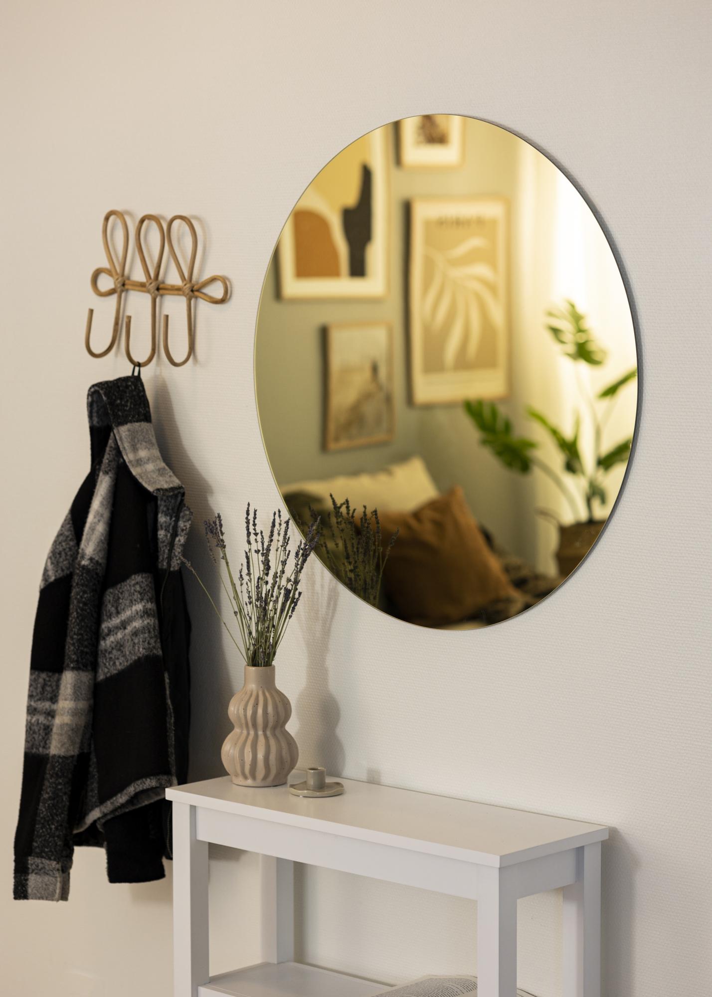 Dieser runde Wandspiegel vereint Eleganz und Verspieltheit auf eine ganz wunderbare, ansprechende Art und Weise. Das gelblich getönte Spiegelglas wirkt erfrischend anders und doch kommt der Spiegel mit seiner runden Form ganz klassisch daher. Der gelbe Farbton lässt sich fabelhaft mit naturnahen Farbnuancen aber auch mit farbenfreudigeren Einrichtungen kombinieren. Der stilvolle Ausdruck dieses runden Wohnspiegels macht sich einfach prima an jeder Wand. Der Spiegel hat einen Durchmesser von 80 cm und ist auf der Rückseite mit Halterungen für die Aufhängung an der Wand ausgestattet.