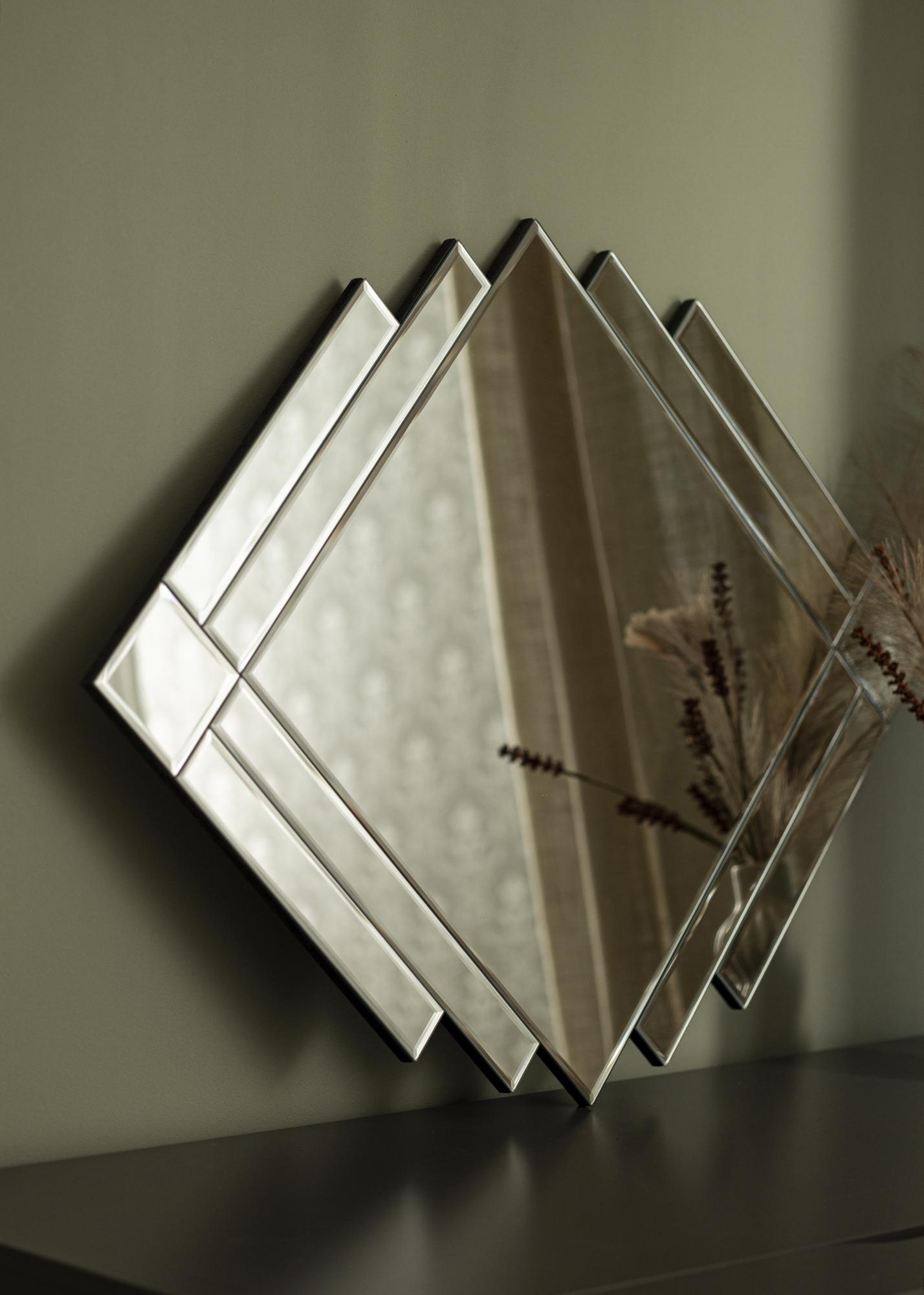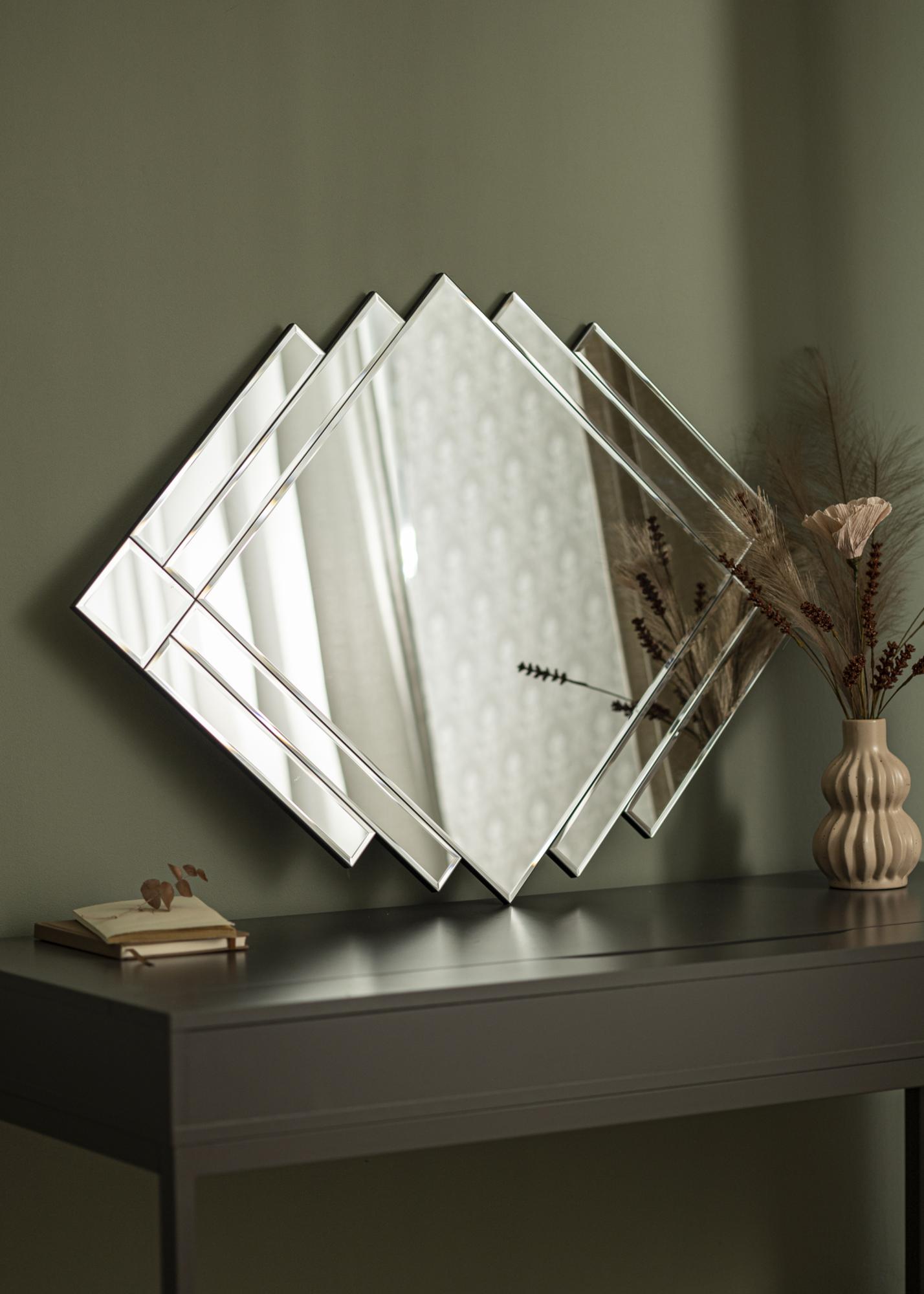 Entdecken Sie hier einen Spiegel, der aus der Norm ausbricht und Ihrem Zuhause eine künstlerische Note verleiht. Mit seinen facettenreichen Spiegelsektionen bietet dieser Spiegel eine außergewöhnliche und auffällige Form, die garantiert ein Gesprächsthema sein wird. Mit seinen Abmessungen von 71x99 cm ist er ein prächtiger Blickfang, egal wo er platziert wird.