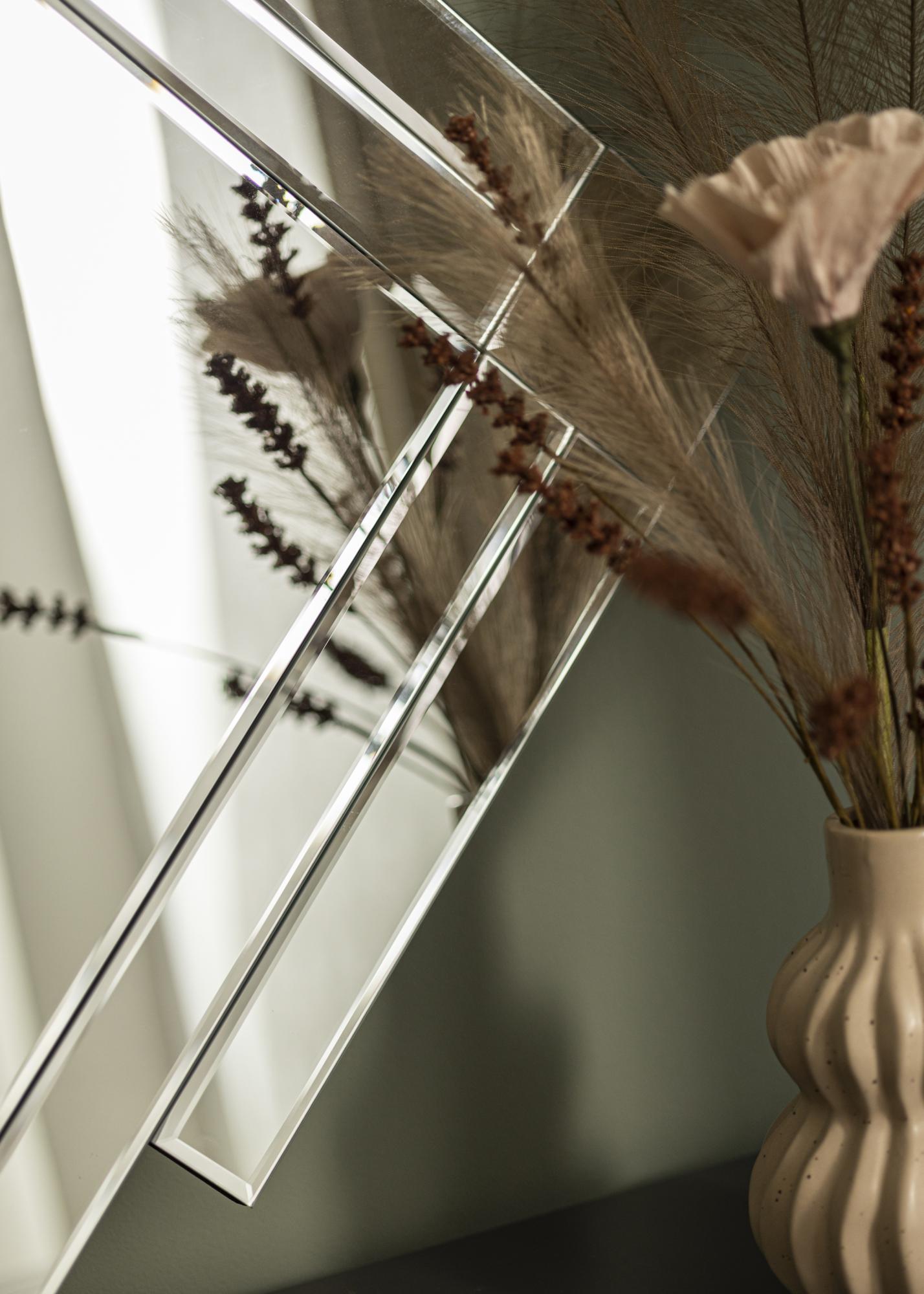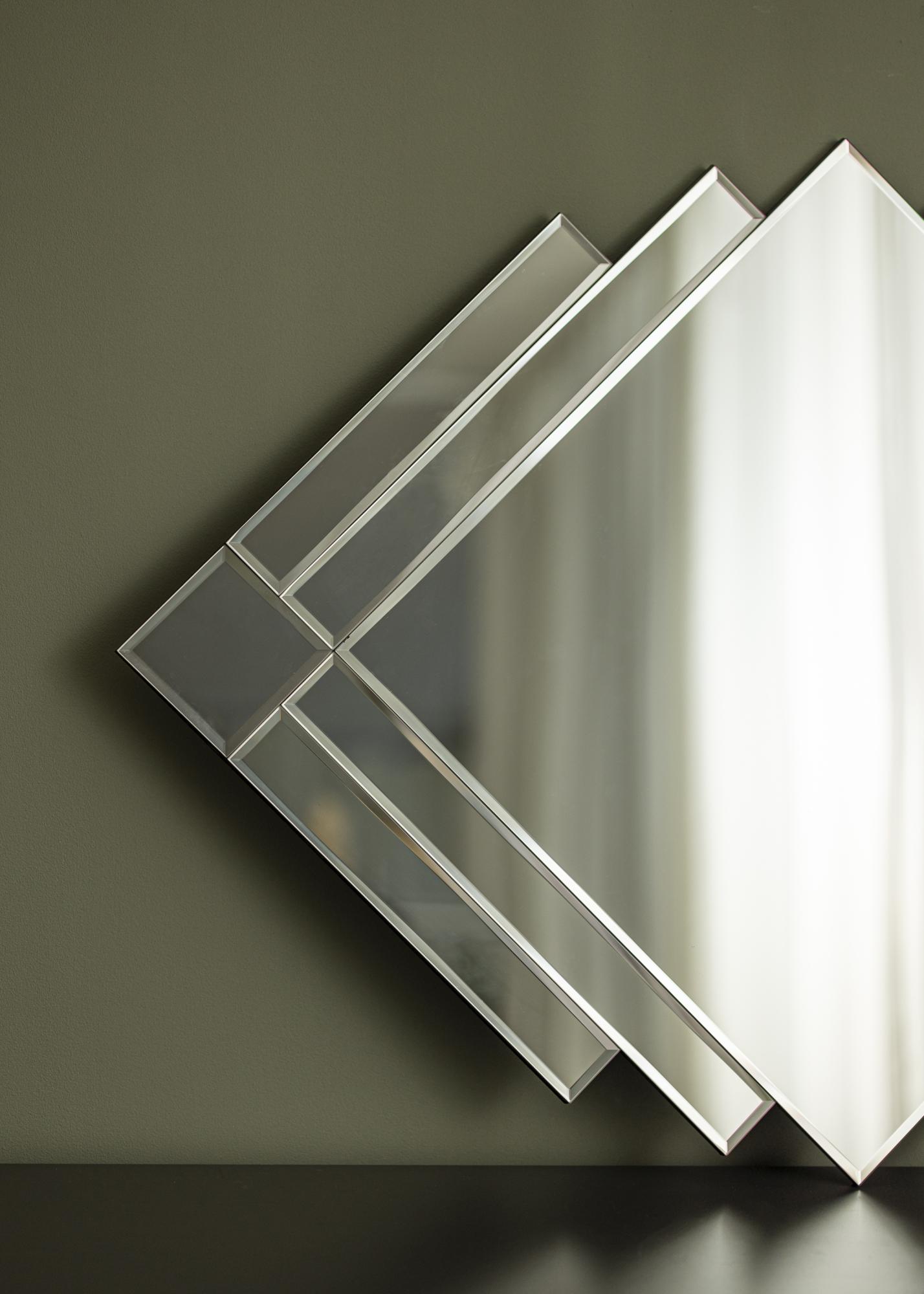Mit seiner modernen, geometrischen Komposition ist dieser Spiegel mehr als nur ein funktionales Objekt; er ist ein Stück zeitgenössischer Kunst. Er passt perfekt in eine minimalistische Umgebung oder als kontrastierendes Detail in einer traditionellen Einrichtung. Lassen Sie diesen Spiegel zu dem besonderen Element werden, das Ihr Zimmer mit Stil und Eleganz vervollständigt.