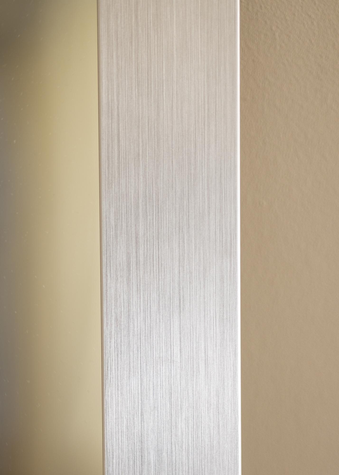 Der Rahmen des Spiegel Dover Glatt Silber ist 69 mm breit und hat eine Tiefe von 22 mm, was dem Spiegel ein robustes und solides Gefühl verleiht. Hergestellt aus Ayous-Holz, kombiniert er Haltbarkeit mit Ästhetik, was ihn zu einer dauerhaften Ergänzung für Ihr Zuhause macht. Die subtile Textur im gebürsteten Silberfinish schafft ein stilvolles und modernes Gefühl, das sich leicht mit verschiedenen Einrichtungsstilen kombinieren lässt.