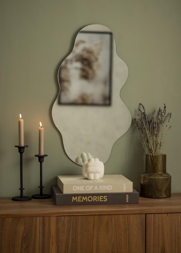 Sind es gerade Linien, Ecken und Kanten, die deine Wohneinrichtung zuhause dominieren? Dann könnte es erstaunlich guttun, geradezu auflockernd wirken, diese ewige Geradlinigkeit mit einem schönen Spiegel in weich-fließender, runder Form zu brechen und für mehr Dynamik und Abwechslung zu sorgen. Der Wandspiegel Fierce Cloud ist ein trendiger Wandspiegel ohne Rahmen, der sich durch wellenförmiges Design auszeichnet. Das dünn gehaltene Spiegelglas von 4 mm trägt zum eleganten Ausdruck dieses modernen Wohnspiegels bei, der sich sowohl in Wohn-, Ess-, Schlafzimmer als auch in Diele oder Flur ausgesprochen gut macht. Die Größe des Wandspiegels beträgt 40x70 cm.