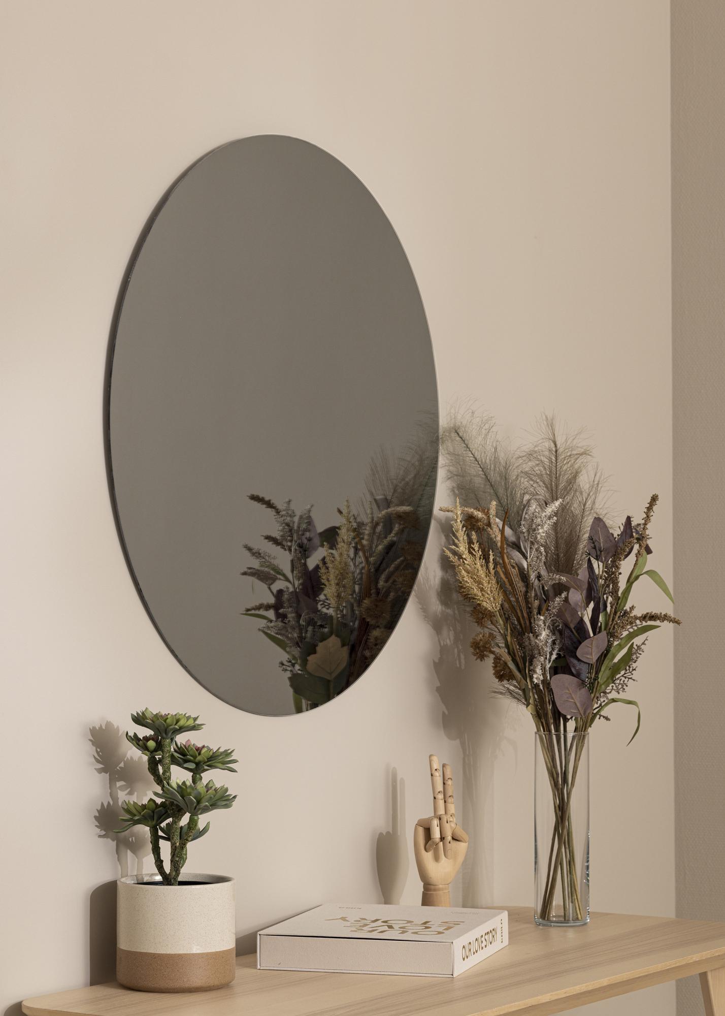 Ein wunderschöner Wandspiegel, der überaus elegant und doch diskret daherkommt. Dieser runde Wohnspiegel zeichnet sich durch das rahmenlose Design und das aparte, grau getönte Spiegelglas aus. Durch das getönte Spiegelglas wirkt dieser Wandspiegel etwas dunkler und doch vermag auch dieser Spiegel Licht zu reflektieren und für eine lebendigere Atmosphäre zu sorgen. Der Spiegel hat einen Durchmesser von 80 cm.