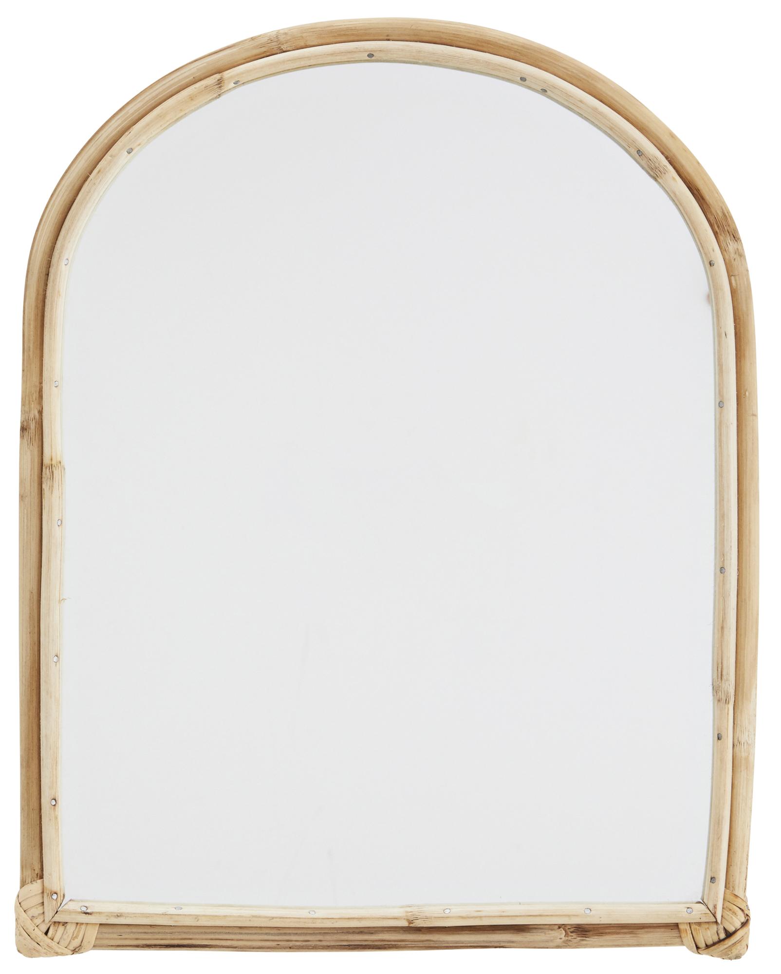 Bogenförmiger Spiegel von Madam Stoltz, der in allen Räumen deines Zuhauses zu einem attraktiven Detail wird. Der Spiegel hat eine elegante halbovale Form und ist mit einem Bambusrahmen versehen. Die Kombination aus Bambus und Spiegelglas erzeugt eine Bohemian-Style- und naturnahe Optik, während der Spiegel in seiner Gesamtheit frische Modernität um ausstrahlt. Der Spiegel hat die Maße 36×47 cm. Der Spiegel ist handgefertigt und aus natürlichen Materialien hergestellt, was bedeutet, dass jeder einzelne Artikel im Aussehen leicht variieren kann.