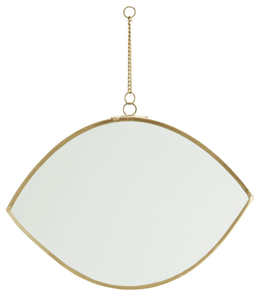Mache diesen wunderschönen Spiegel von Madam Stoltz zu einem auffälligen Einrichtungsdetail in deinem Zuhause. Seine besondere Form ist einem Auge nachempfunden, was diesem Wandspiegel, zusammen mit dem messingfarbenen Rahmen, eine sehr edle Optik verleiht. Der Spiegel wird an einer grazilen Kette aufgehängt, was seinen Eindruck von Eleganz noch verstärkt. Das Spiegelmodell ist in zwei verschiedenen Größen erhältlich, diese Variante hat eine Länge von 16 cm. Dank seiner zierlichen Größe lässt sich dieser Wandspiegel hervorragend mit anderen Spiegelmodellen kombinieren.