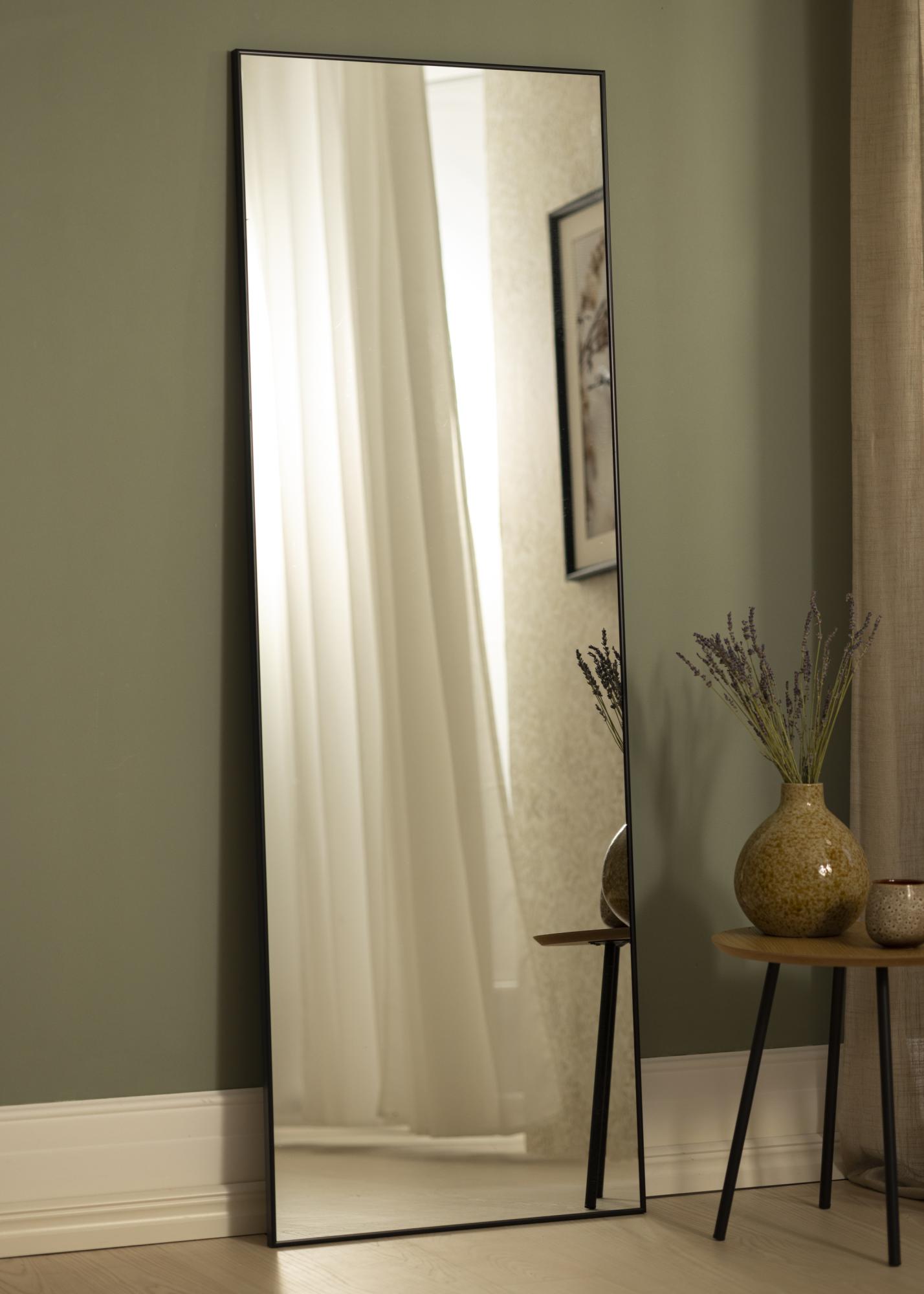 Entdecken Sie die schlichte Eleganz mit unserem 60x165 cm stehenden Spiegel, eine perfekte Kombination aus Funktion und Design. Dieser schlanke, rechteckige Spiegel ist elegant von einem schwarzen Aluminiumrahmen umgeben, der jedem Raum ein modernes und raffiniertes Gefühl verleiht. Seine großzügige Größe und klassische Form machen ihn zu einem praktischen und dekorativen Element in Ihrem Zuhause.