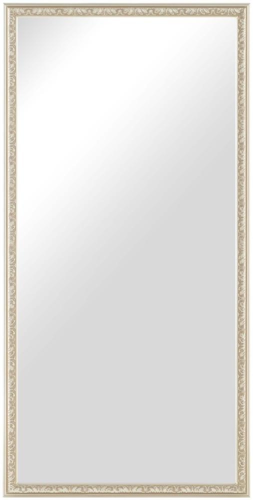 Lass diesen zeitlosen, eleganten Spiegel die Wände bei dir Zuhause verschönern! Der silberfarbene Rahmen des Spiegels zeichnet sich durch sein edles, nostalgisch bzw. antik anmutendes Profil mit stilvollem Ornament-Muster aus. Das klassische, stilsichere Design dieses Wandspiegels bereichert jeden Raum und macht einen echten Blickfang aus, ob als einzige Deko an der Wand oder in Kombination mit hübsch eingerahmten Bildern als persönlich gestaltete Bilderwand.
