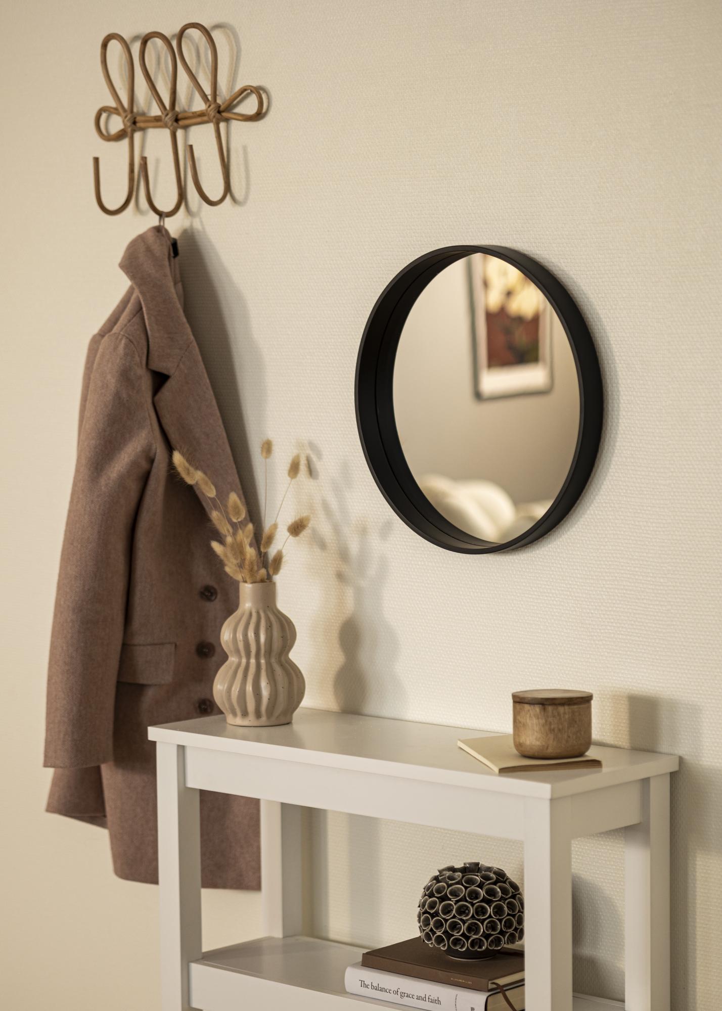 Entdecken Sie die elegante Einfachheit unseres runden Spiegels, ein zeitloses Deko-Element, das perfekt in jedes Zuhause passt. Dieser stilvolle, runde Spiegel besticht durch seinen schwarzen Rahmen, der dem Raum ein frisches und modernes Gefühl verleiht. Sein minimalistisches Design fügt sich in verschiedene Einrichtungsstile ein, von skandinavisch bis industriell.