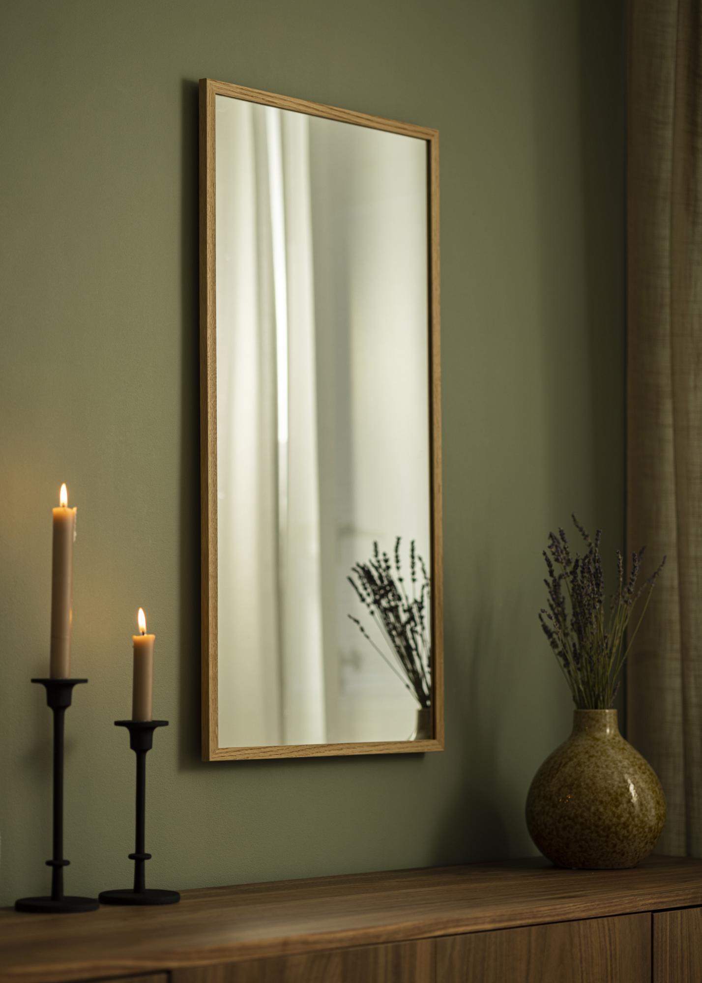 Dieser rechteckige Spiegel ist in massiver Eiche gerahmt, was Ihrer Einrichtung eine warme und organische Atmosphäre verleiht. Der natürliche Holzrahmen ist nicht nur schön anzusehen, sondern trägt auch zu einem nachhaltigen und zeitlosen Design bei, das viele Jahre halten wird.