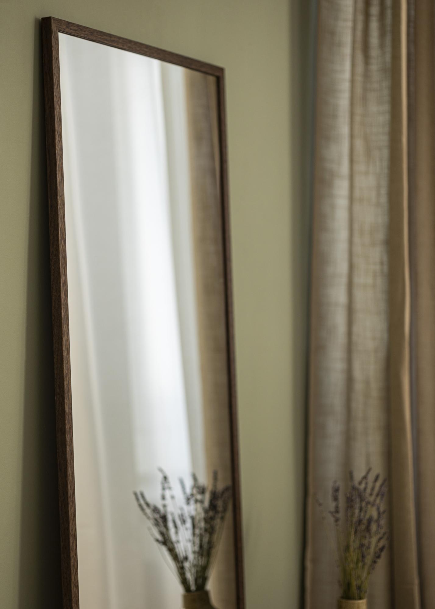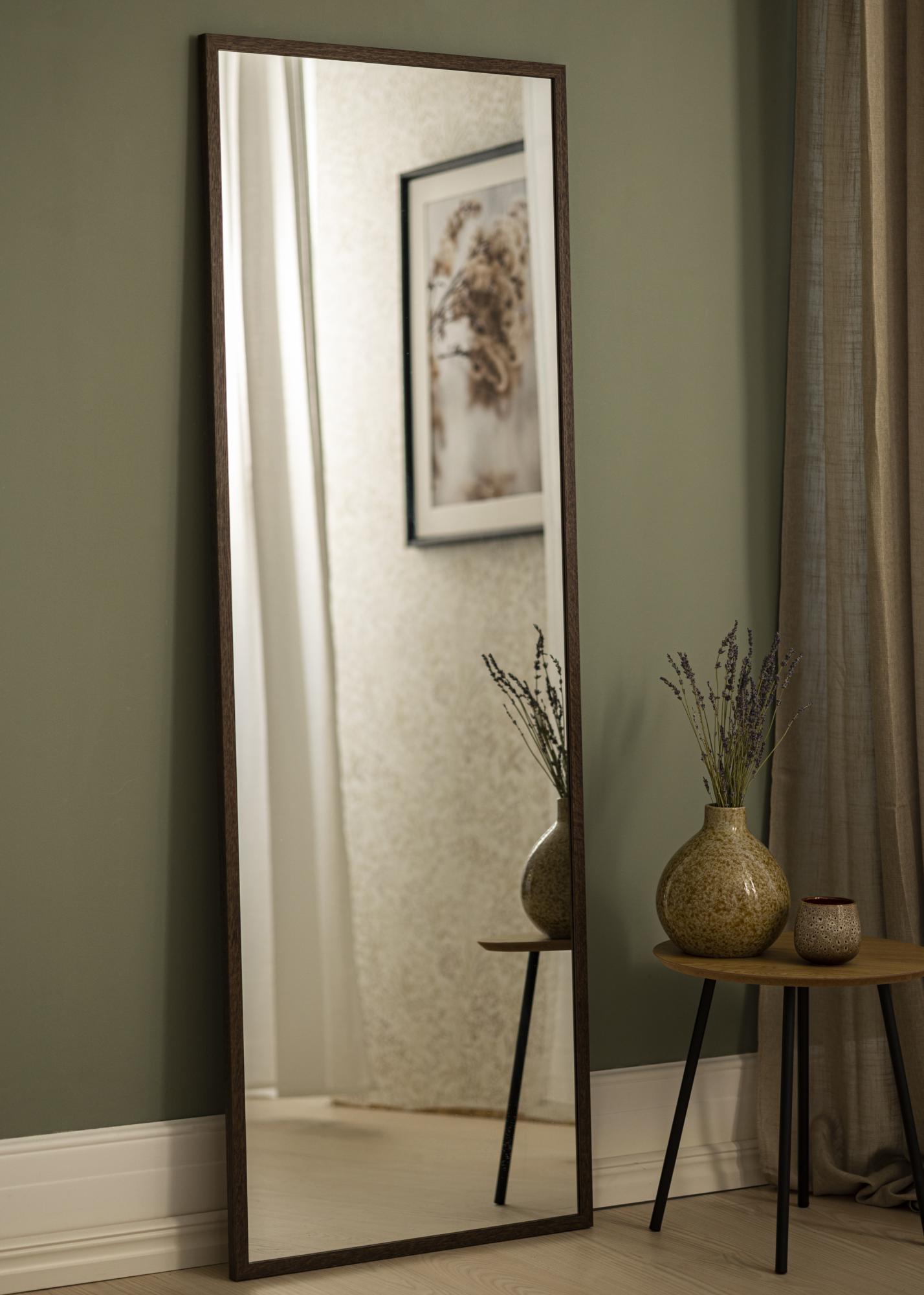 Der Rahmen des Spiegels besteht aus echtem Eichenholz und hat einen tiefen dunklen Eichenton, der sofort ins Auge fällt. Der dicke Rahmen verleiht ein robustes Gefühl und trägt zur insgesamt robusten Konstruktion des Spiegels bei. Dieser Spiegel ist nicht nur eine praktische Bereicherung, sondern auch ein Kunstwerk, das verschiedene Einrichtungsstile von traditionell bis modern ergänzt.