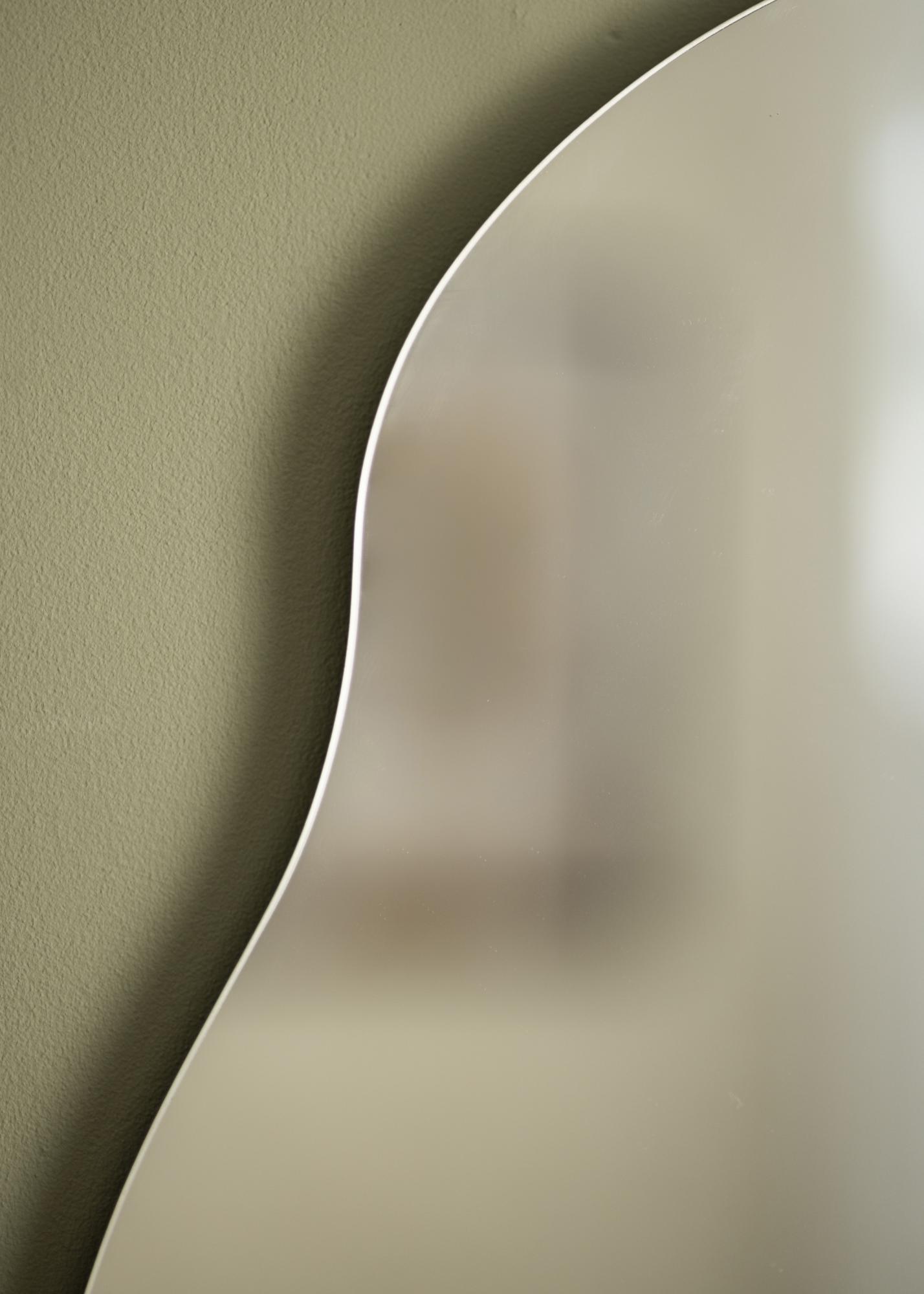 Der Wohnspiegel Thin Cloud ist ein länglicher, schmalerer Wandspiegel mit einer besonderen, wogenartigen Form. Das fließend weiche, wellenförmige Design sorgt für einen geschmeidigen, eleganten Charakter, der sich wunderbar mit Möbeln wie Tischen, Regalen, Kommoden mit gerader, kantiger Linienführung kombinieren lässt. Die Größe dieses Wandspiegels beträgt 40x80 cm. Auf der Rückseite des Spiegels befindet sich eine Halterung für die Aufhängung an der Wand.