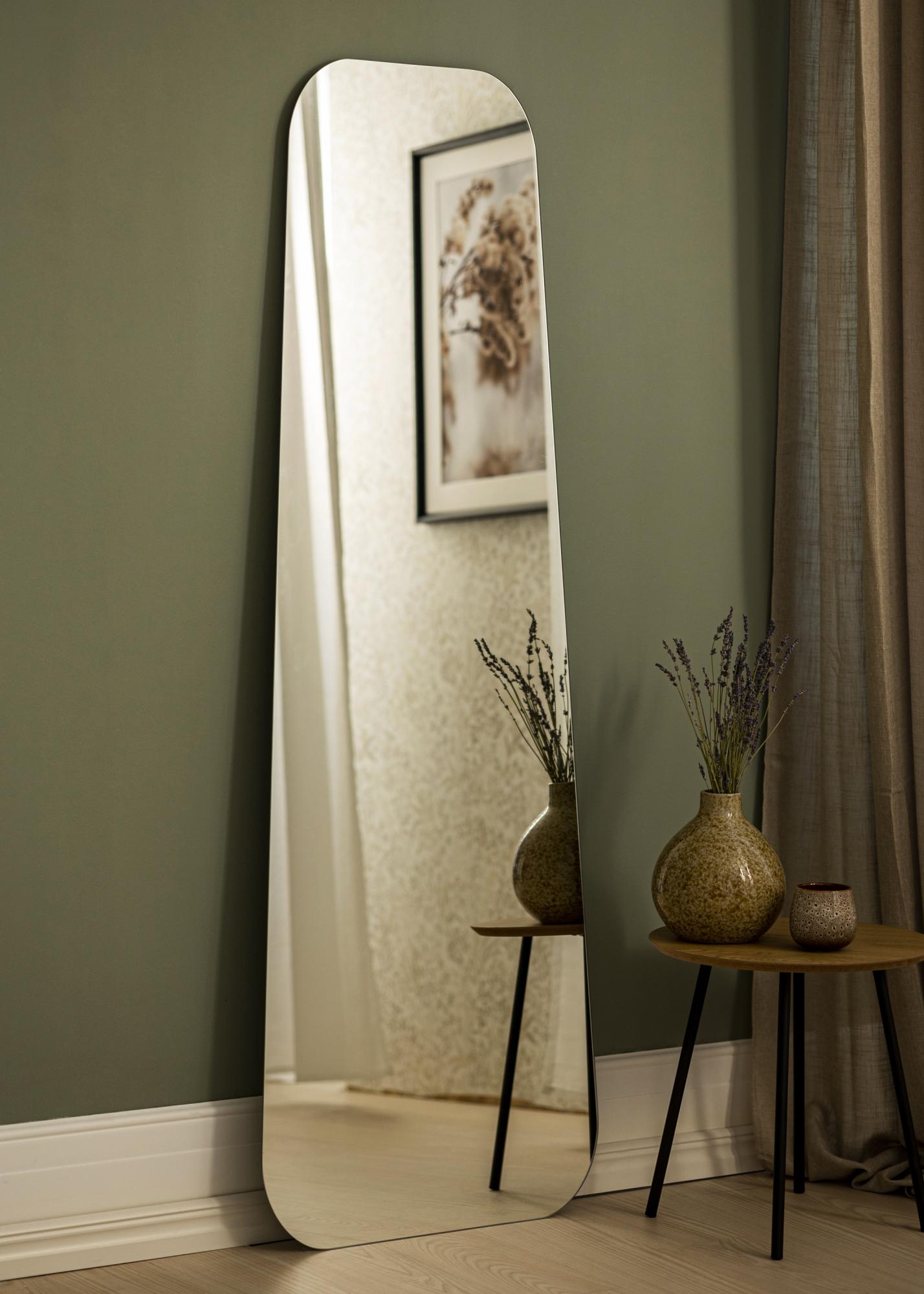 Entdecken Sie den stilvollen und vielseitigen Spiegel, der für jedes Zuhause entworfen wurde. Mit seinen großzügigen Abmessungen von 55x155 cm bietet dieser Spiegel eine Ganzkörperreflexion, die perfekt für Schlafzimmer, Flure oder Ankleidezimmer ist. Die auffällige Form des Spiegels vereint Eleganz und Funktionalität, mit seinen sanft abgerundeten Ecken und einer langgestreckten Silhouette, die einen modernen Touch für die Einrichtung des Raumes bietet.