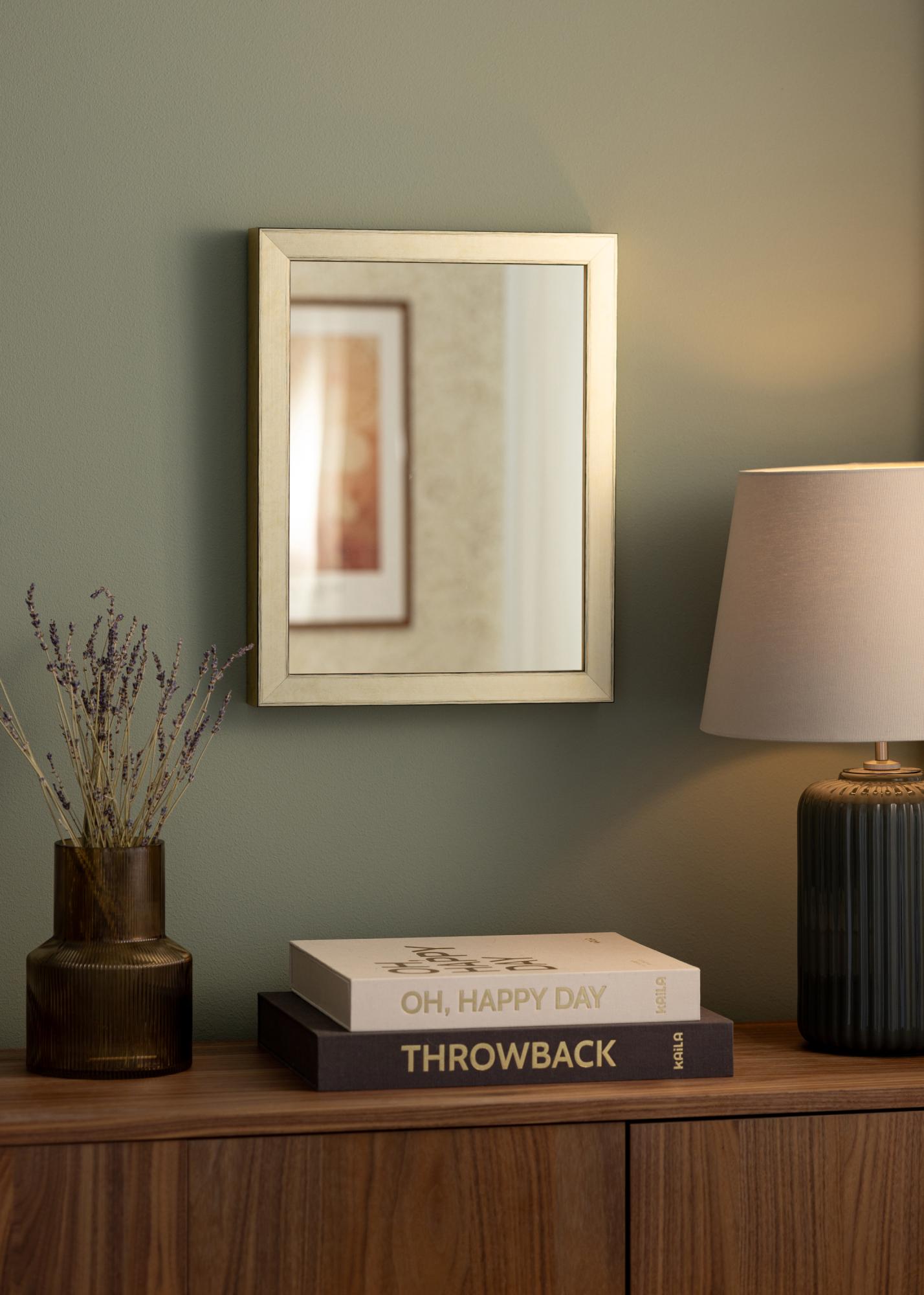 Der Rahmen des Spiegels Tyr Gold ist 30 mm breit und hat eine Tiefe von 50 mm, was dem Spiegel ein robustes und solides Gefühl verleiht. Hergestellt aus Kiefer, kombiniert er Haltbarkeit mit Ästhetik. Die subtile Patina auf dem Rahmen verleiht dem Spiegel einen einzigartigen Charakter, ohne den Raum zu dominieren, was ihn zu einer ausgezeichneten Wahl für alle Arten von Inneneinrichtungen macht.