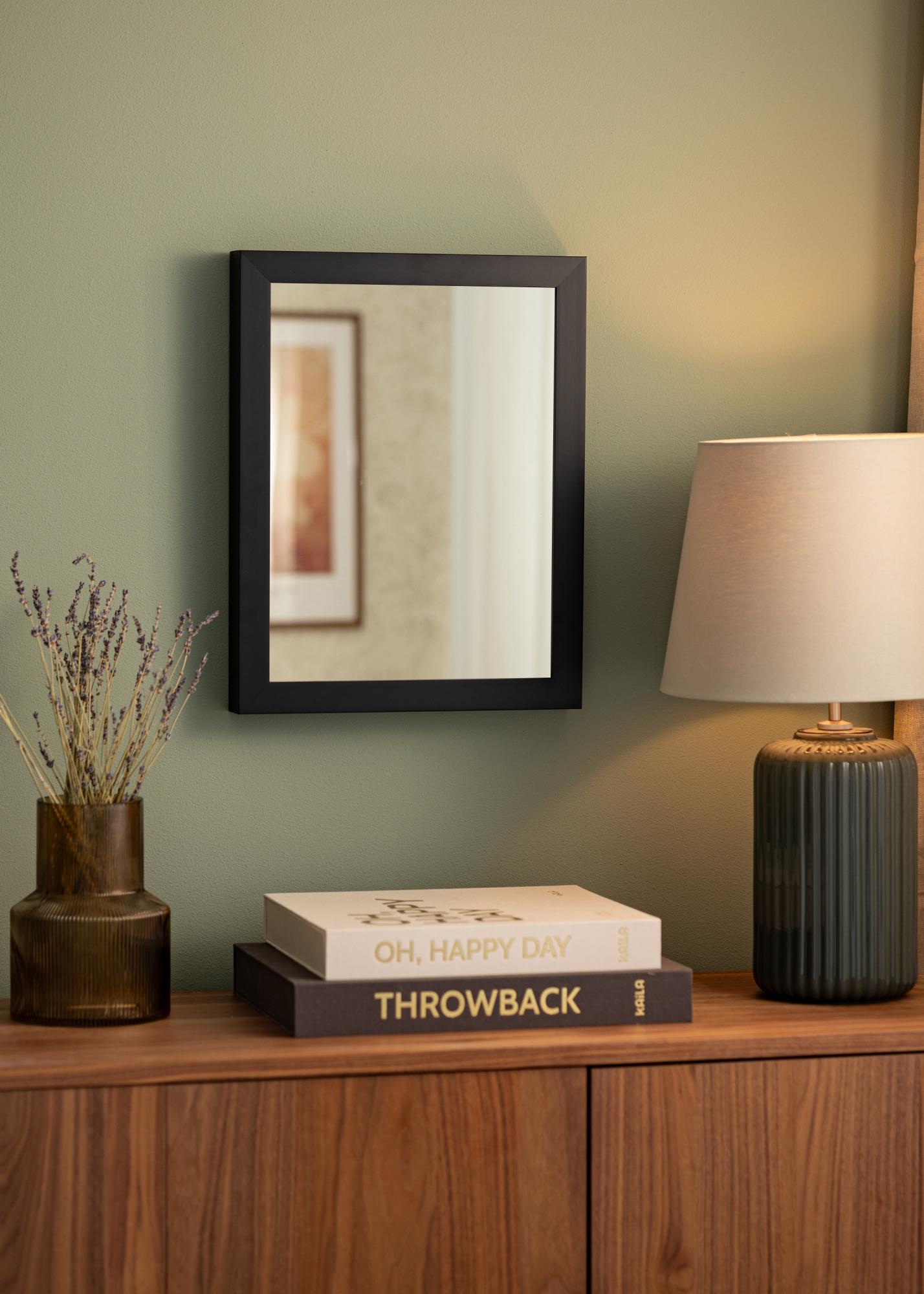 Dieser Spiegel hat eine elegante schwarze Farbe, die in jedem Raum, in dem er platziert wird, einen anspruchsvollen und stilvollen Eindruck hinterlässt. Die 30 mm breite Rahmenleiste fasst den Spiegel auf geschmackvolle Weise ein und trägt zu seinem modernen Aussehen bei. Mit einer Tiefe von 50 mm bekommt der Spiegel ein robustes Gefühl, während er seine Eleganz behält.