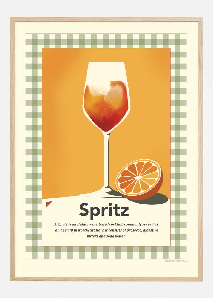 Für alle, die sich nach dem Urlaubsgefühl sehnen, präsentieren wir ein Poster, das Sie direkt zu den sonnigen Terrassen Norditaliens transportiert. Unser von Retro inspiriertes Spritz-Poster feiert den klassischen Aperitif mit einer Illustration, die vor Wärme und Freude strahlt. Die orangefarbenen Nuancen des Glases vor einem frechen, grün karierten Hintergrund erzeugen einen Eindruck, der sowohl vintage als auch zeitlos ist.