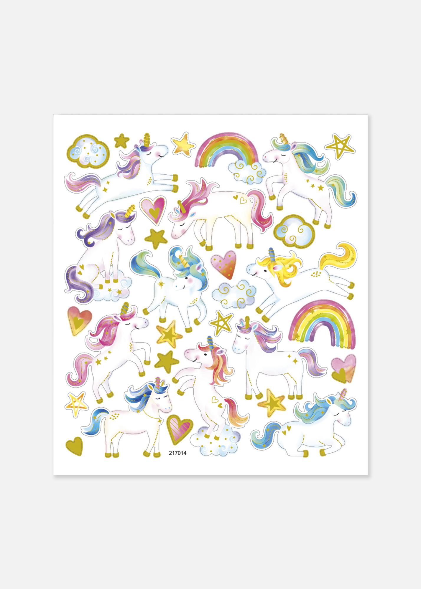 Verleihen Sie Ihren Sachen mit unseren Einhorn-Aufklebern einen magischen Touch! Diese selbstklebenden Papieraufkleber messen 15x16,5 cm und kommen auf einem Blatt. Sie sind mit schönen Details aus glänzender Folie verziert, die Ihren Sachen schnell ein einzigartiges und verzaubertes Aussehen verleihen.