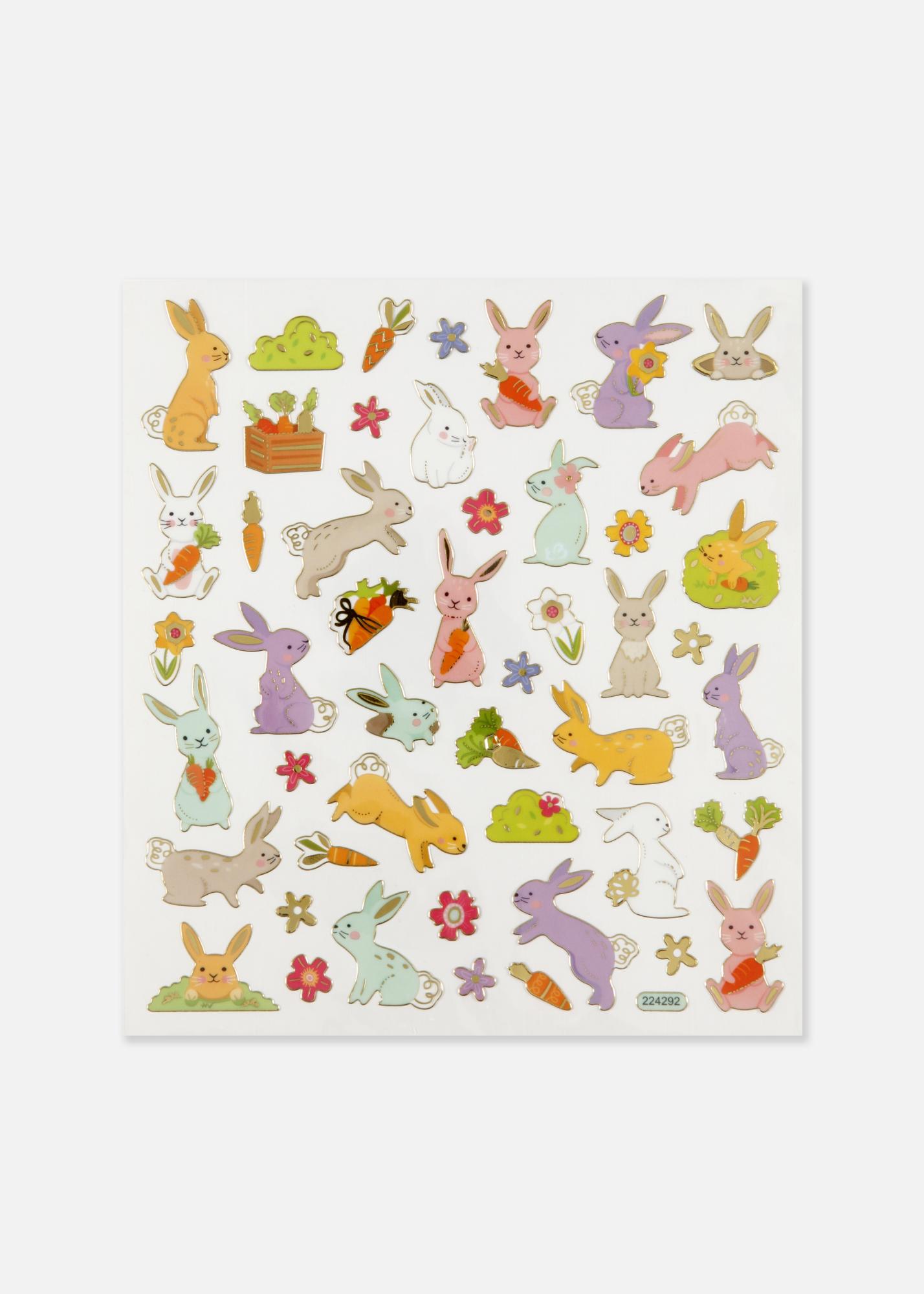 Geben Sie Ihren Bastelprojekten eine festliche Note mit unseren Aufklebern Osterhasen! Diese selbstklebenden Plastikaufkleber messen 15x16,5 cm und kommen auf einem Blatt. Sie sind mit schönen Details aus glänzender Folie dekoriert, die Ihren Sachen schnell einen Schub verleiht.