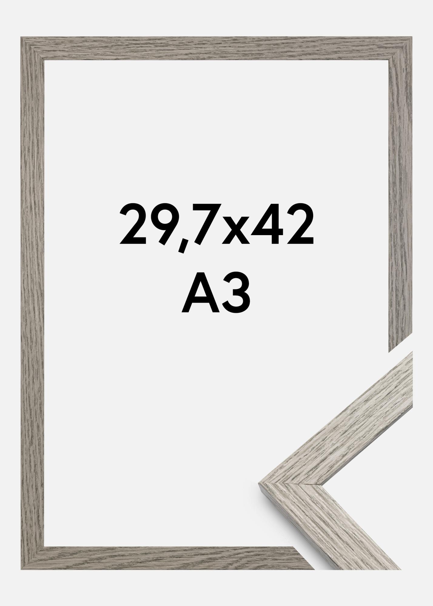 Stilvolle Grey Oak ist ein moderner Holzrahmen aus Kiefer. Dieser Bilderrahmen präsentiert sich in einer sehr stilvollen eichenfarbenen grauen Farbe. Die Rahmenleiste misst 20 mm Breite und 14 mm Tiefe. Auf der Rückseite des Rahmens befinden sich die dazugehörigen Wandbefestigungen für sowohl vertikale als auch horizontale Aufhängung. In diesem schönen Rahmen können Sie wählen, ein Schwarz-Weiß-Foto einzurahmen, das ton-in-ton mit der exklusiven grauen Schattierung der Rahmenleiste geht, oder wählen Sie ein farbenfrohes Motiv, um einen schönen Kontrast zu schaffen. Stilvolle Grey Oak ist in mehreren verschiedenen Größen und Farbnuancen erhältlich, die schön miteinander kombiniert werden können. Dieser passt für Fotos im A3 Format (29,7x42 cm).