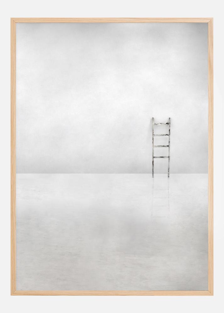 Ein minimalistisches Poster mit einer Leiter, die sich vor einem weißen Hintergrund aufrichtet. Die "Social Ladder" genannte Leiter ist eine einsame Treppe, die ebenfalls auf einem weißen Boden steht. Sowohl die Wand als auch der Boden sind in denselben Weiß- und Grautönen gehalten, wobei die Leiter in dunkleren Tönen scharf umrissen ist. Viel Spaß beim Interpretieren der Bedeutung dieses Bildes.