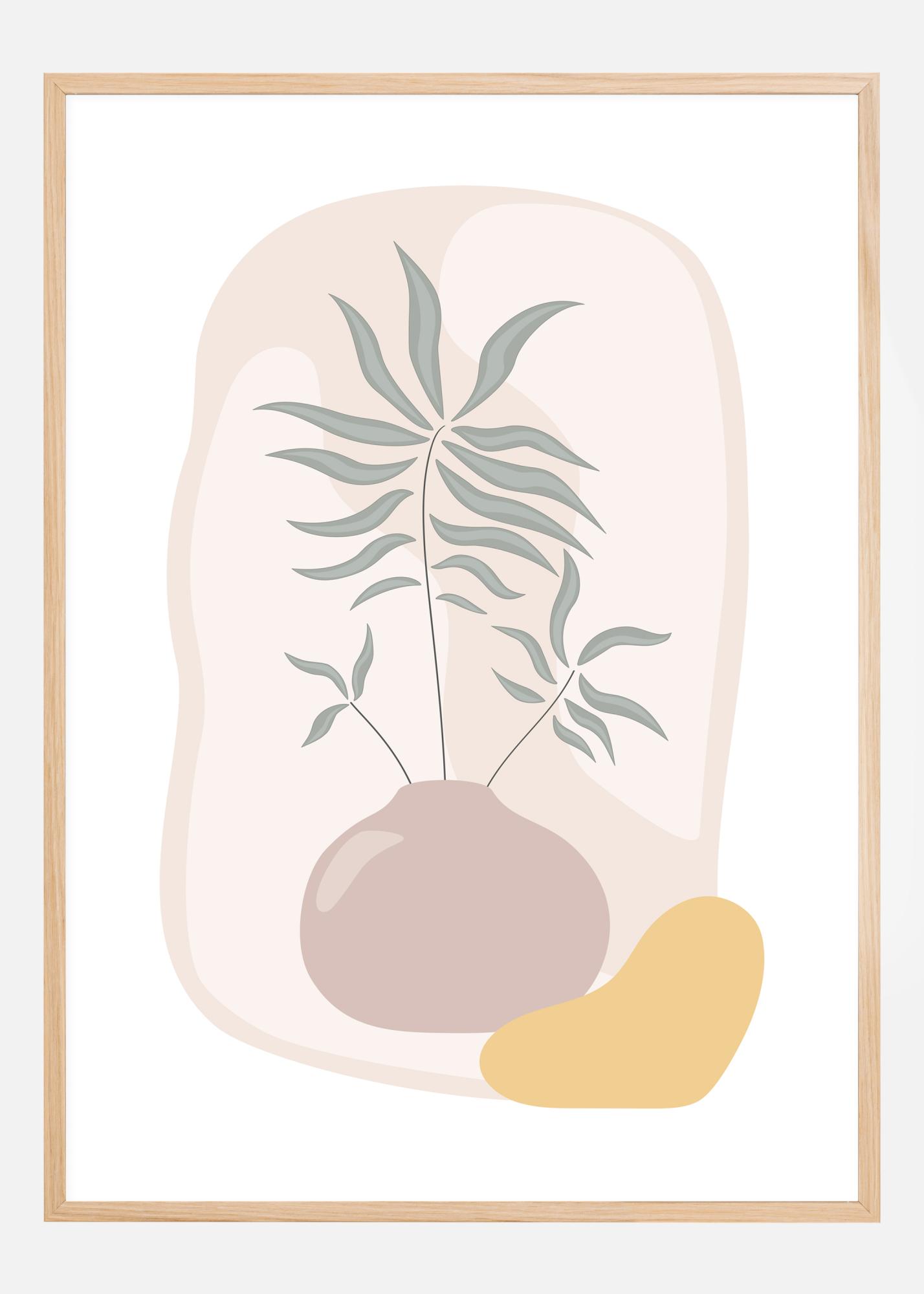Ein stilisiertes Poster einer Vase, aus der eine grüne Pflanze herausragt. Andere seltsame Formen und Farben füllen den Hintergrund und machen es zu einem interessanten, aber etwas abstrakten Werk. Kombinieren Sie es mit einer ähnlichen Zeichnung, um zu Hause eine eigene Mini-Galerie zu erstellen.