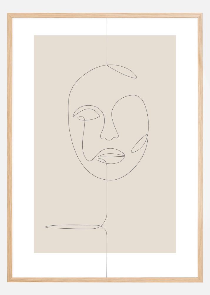 Ein Poster mit einer dünnen Linienzeichnung eines abstrakten Gesichts. Das Lustige daran ist, dass das Gesicht mit einer einzigen Linie gezeichnet wird. Die Linie fällt von oben herab wie ein Stück Schnur, windet sich um das Gesicht und fällt dann am unteren Rand des Bildes wieder ab. Dieses seltsam überzeugende Bild sollte mit einer kräftigen Wand gepaart werden, damit es noch mehr Eindruck macht.