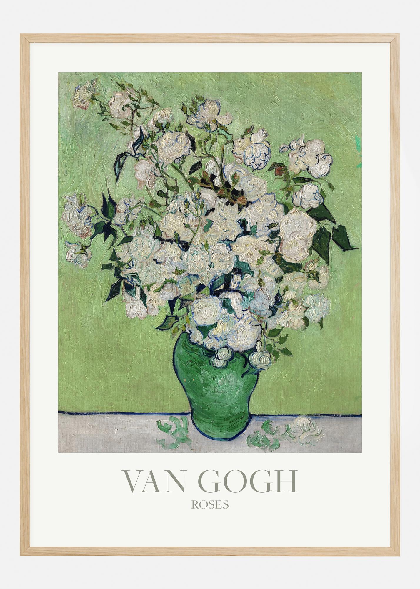 Dieses helle und lebendige Poster zeigt Vincent van Goghs "Roses", ein Gemälde, das einen Strauß herrlicher Rosen in einer kräftig grünen Vase darstellt. Van Goghs charakteristischer Stil, mit dicken, expressiven Pinselstrichen und lebendigen Farben, betont die zarte Schönheit der Blumen vor einem kontrastierenden Hintergrund. Es ist ein Werk, das sowohl Leidenschaft als auch eine tiefe Wertschätzung für die Schönheit der Natur ausstrahlt.