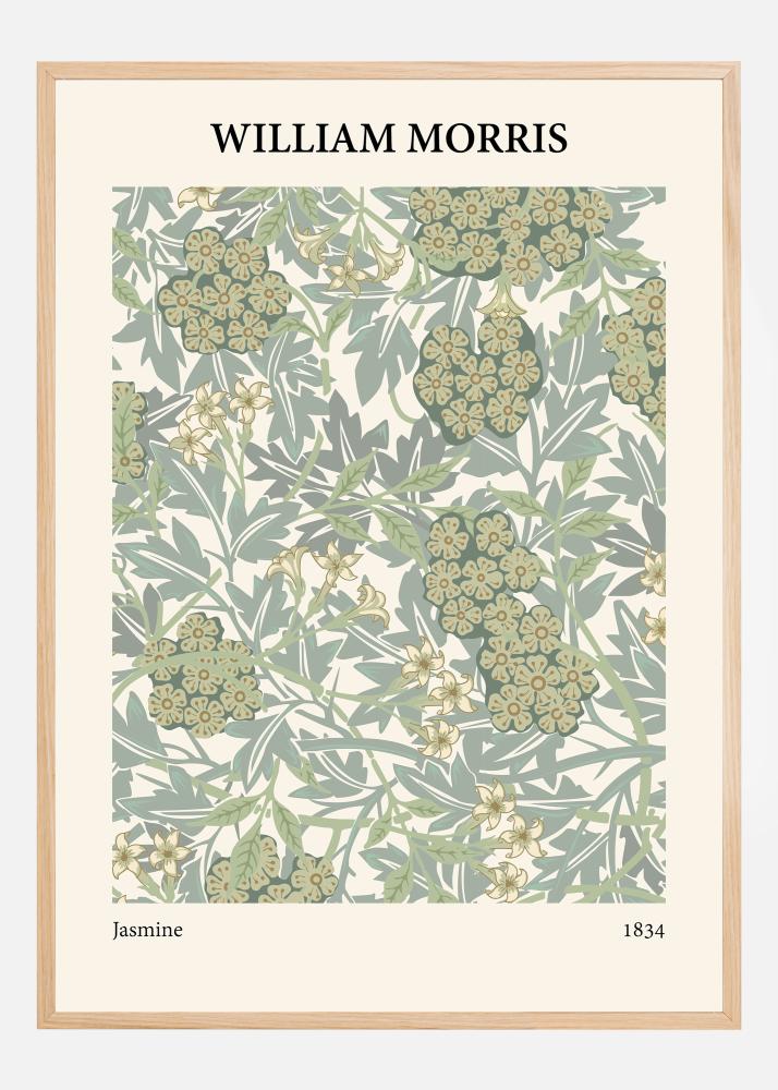 William Morris' "Jasmin" Plakat ist eine Präsentation sowohl des Zarten als auch des Dynamischen in der Flora der Natur. Dieser Druck ist lebendig mit seinem fließenden Muster aus Jasminblüten und üppigem Laubwerk. Das Muster ist mit einer raffinierten Farbpalette in Grün, Beige und Gelb komponiert, die sich verbinden, um ein Gefühl eines dichten und einladenden Gartens zu schaffen, bereit zur Erkundung und Bewunderung.