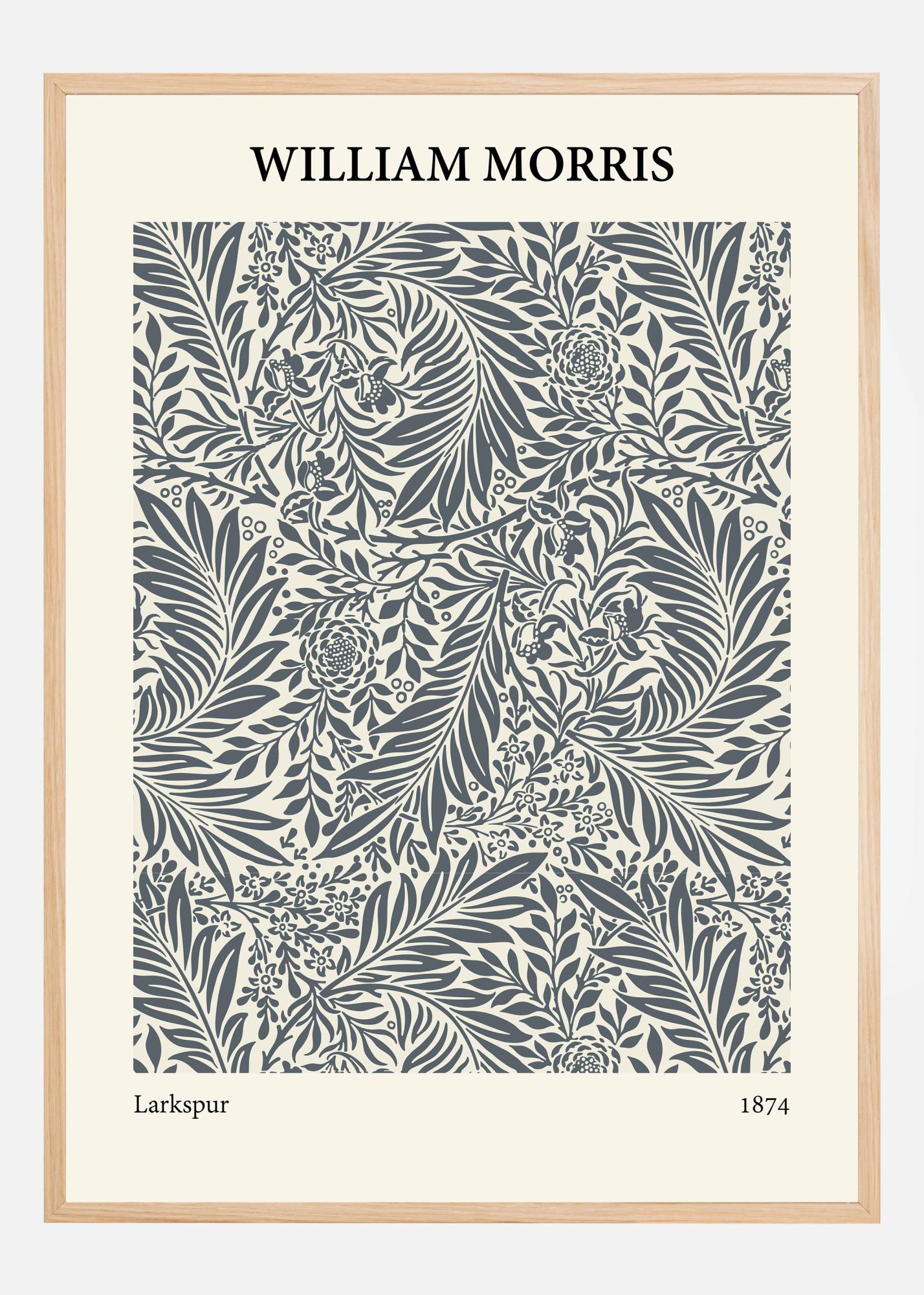 Dieses William Morris-Poster von 1874, betitelt "Larkspur", hebt die exquisite Detailgenauigkeit und organische Schönheit hervor, die charakteristisch für Morris' Design ist. Das Motiv, das mit raffinierten Blumen und Blattwerk blüht, strahlt eine zeitlose Eleganz aus, die sowohl traditionelle als auch zeitgenössische Räume ergänzt. Das Design ist eine klassische Darstellung der Werte der Arts-and-Crafts-Bewegung, bei der handwerkliche Qualität und naturnahe Themen im Mittelpunkt stehen.