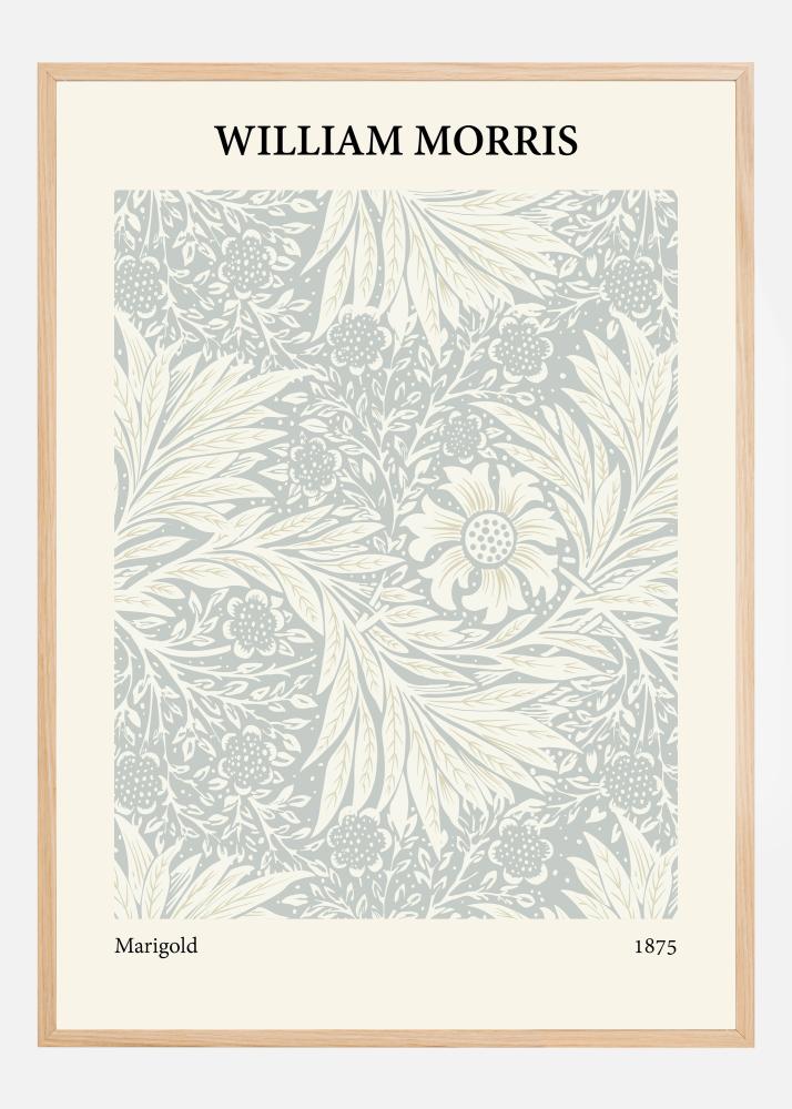 Dieses Poster ist eine stilvolle Interpretation des klassischen "Marigold"-Musters von William Morris aus dem Jahr 1875, wiedergegeben in einer sanften und beruhigenden Farbpalette. Das Design ist eine Symphonie aus kunstvoll verflochtenen Blumen und Laubwerk, die zusammen das Gefühl eines ruhenden englischen Gartens vermitteln. Morris' Liebe zur Natur und zum Handwerk spiegelt sich in jedem Detail dieser komplexen Komposition wider.